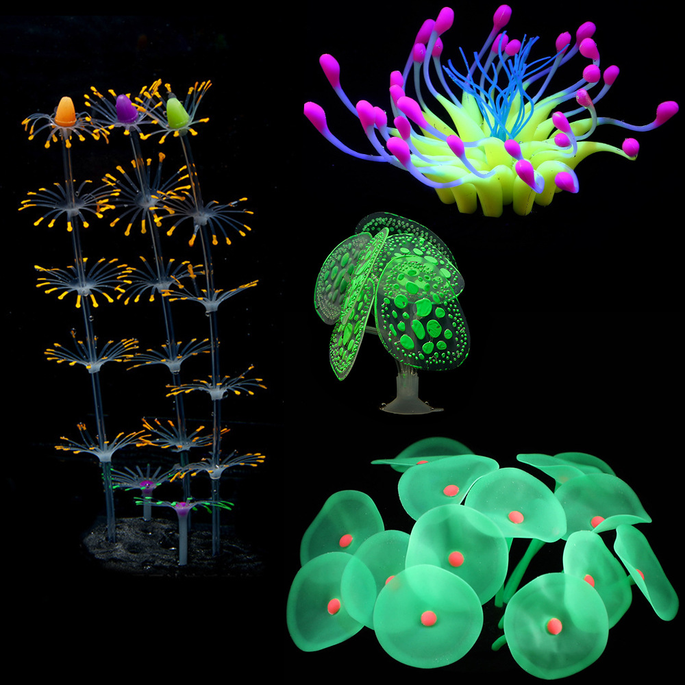 수족관 조경 장식품 어항 모조 수초 부드러운 실리콘 형광 산호 수초 식물 세트