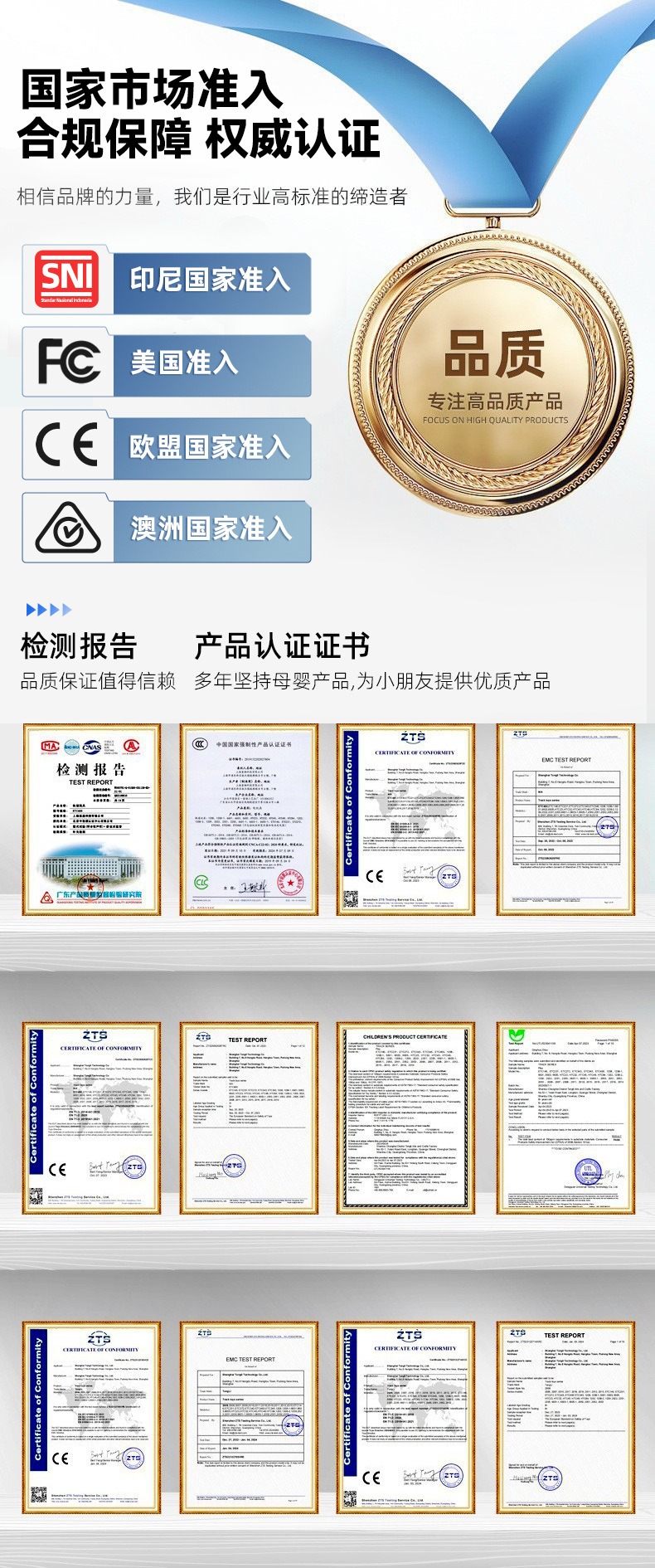 跨境电商/出口/提供图片视频,上架国内平台和跨境平台,联系客服取中英文商详资料包,或联系客服跨境电商/出口/提供各类证书、检测报告 CE-UA CE-Toy CE-EN71-1-2-3 CE-62115 CE-Red ROHS Battery CE-Battery CPC FCC RSL MSDS NE60828 ASTM 其他证书陆续更新中需要可联系客服拿取