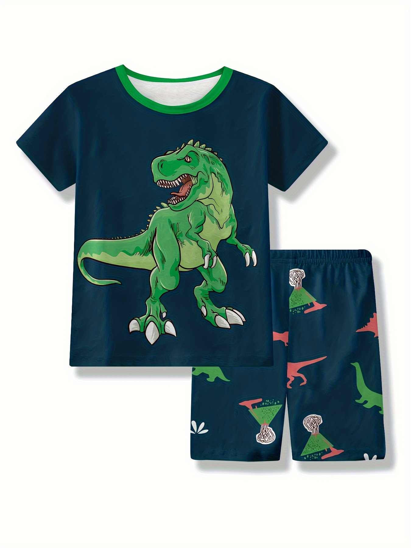 국경 간 아동복 betop 만화 3 차원 공룡 소년 티셔츠 잠옷 여름 한국 어린이 반팔 반바지 세트