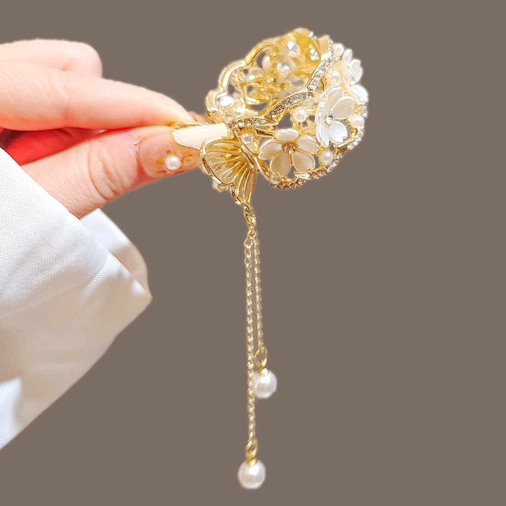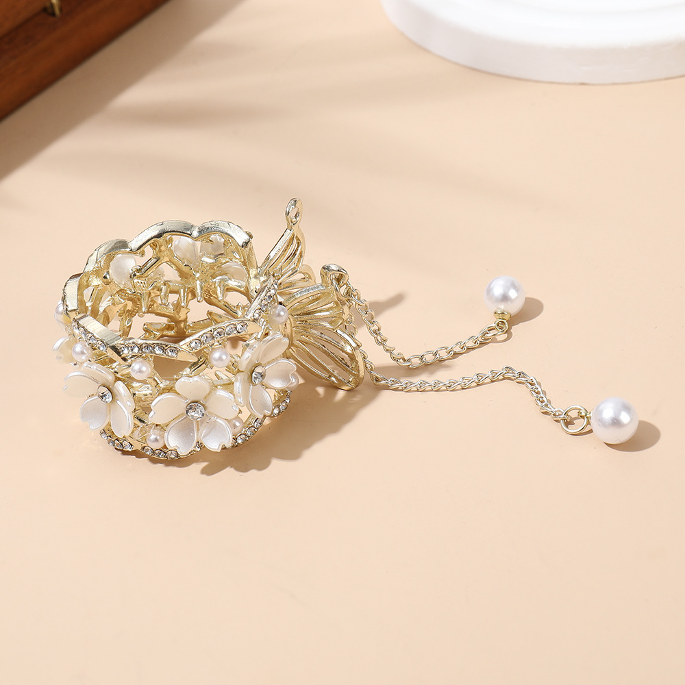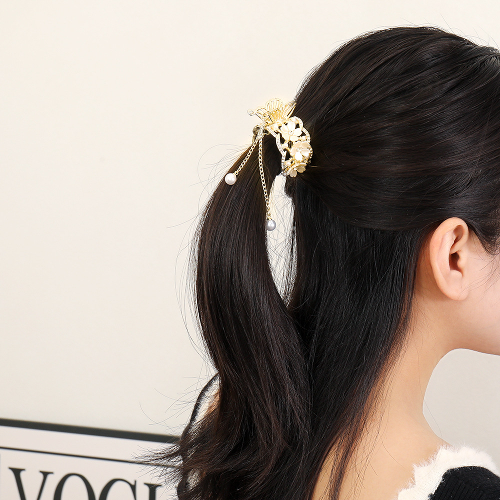 진주 술 높은 포니 테일 클립 여성의 안티 붕괴 고정 유물 머리핀 모조 다이아몬드 꽃 클립 머리핀 머리핀 머리핀 머리핀스토어 가기