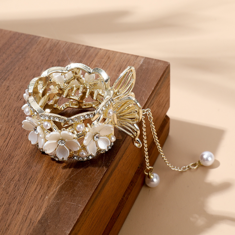 진주 술 높은 포니 테일 클립 여성의 안티 붕괴 고정 유물 머리핀 모조 다이아몬드 꽃 클립 머리핀 머리핀 머리핀 머리핀