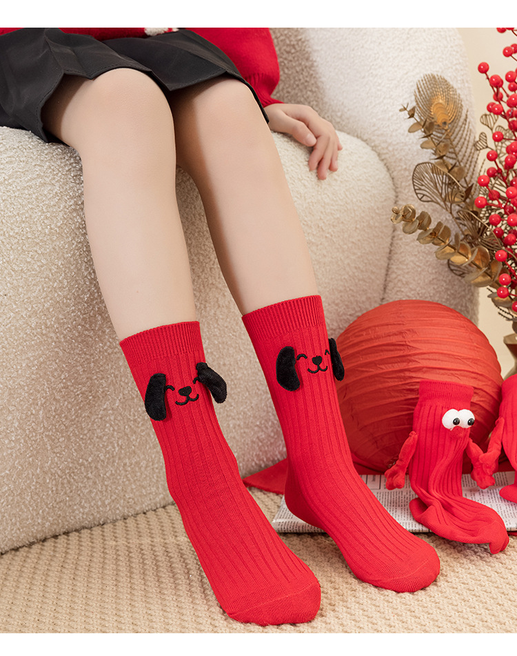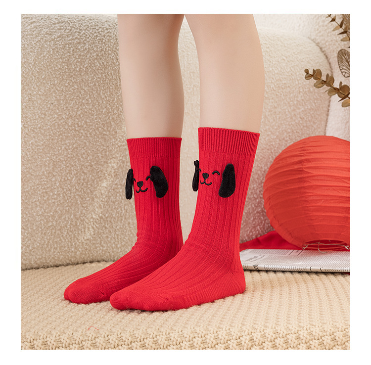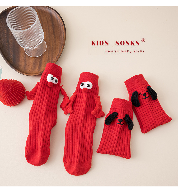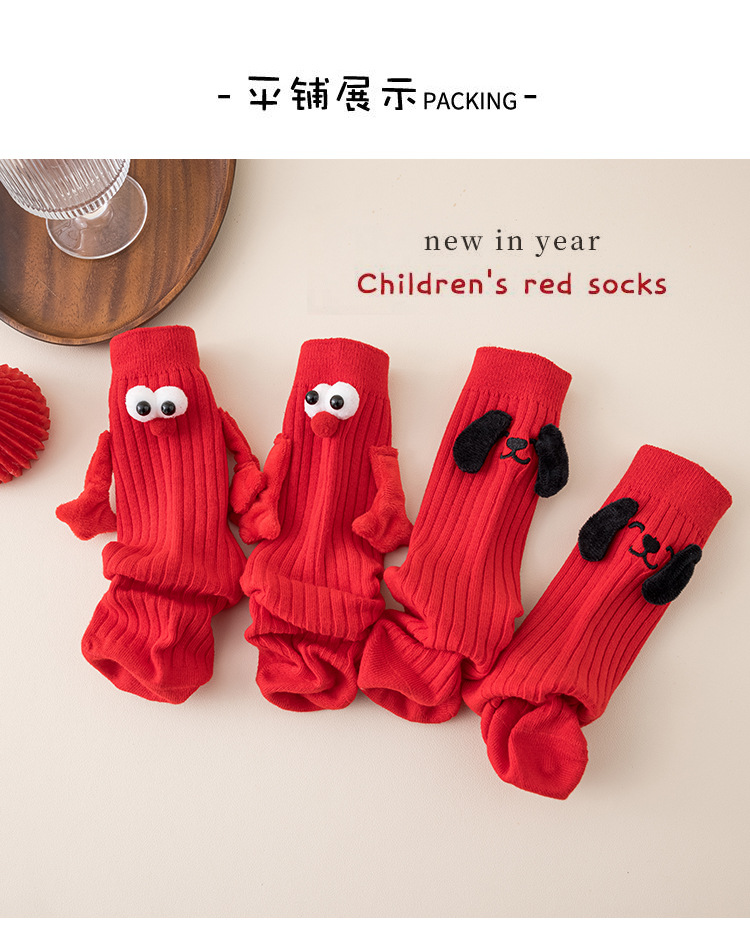 어린이 양말 도매 올해 빨간색 3 차원 인형 새해 손 양말 아기 소년과 소녀 면화 스타킹