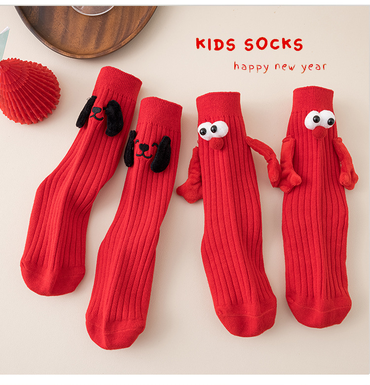 어린이 양말 도매 올해 빨간색 3 차원 인형 새해 손 양말 아기 소년과 소녀 면화 스타킹스토어 가기