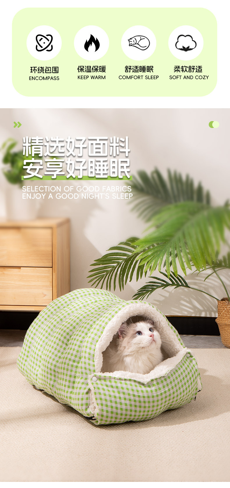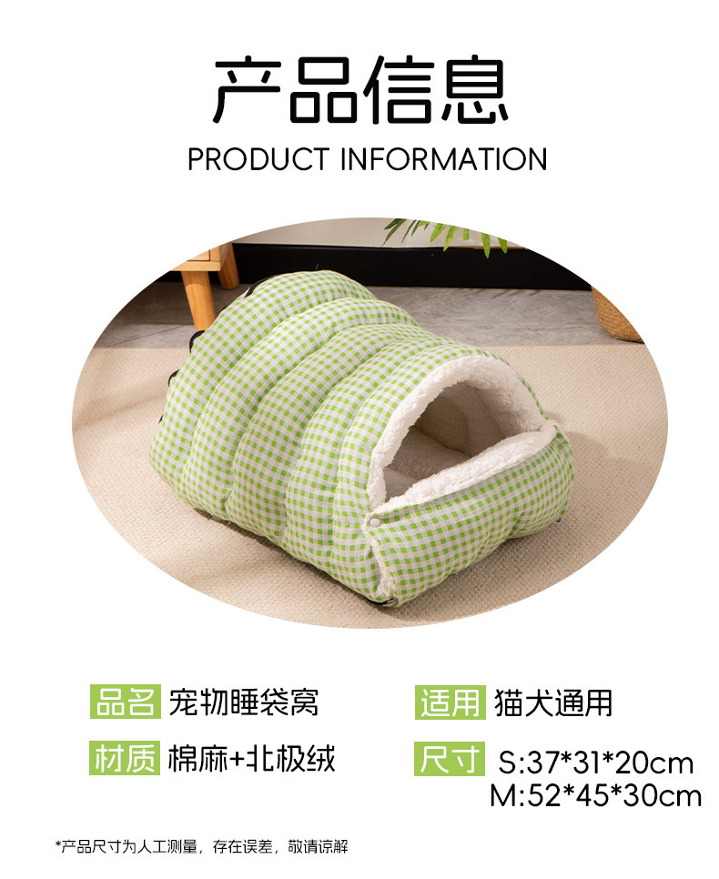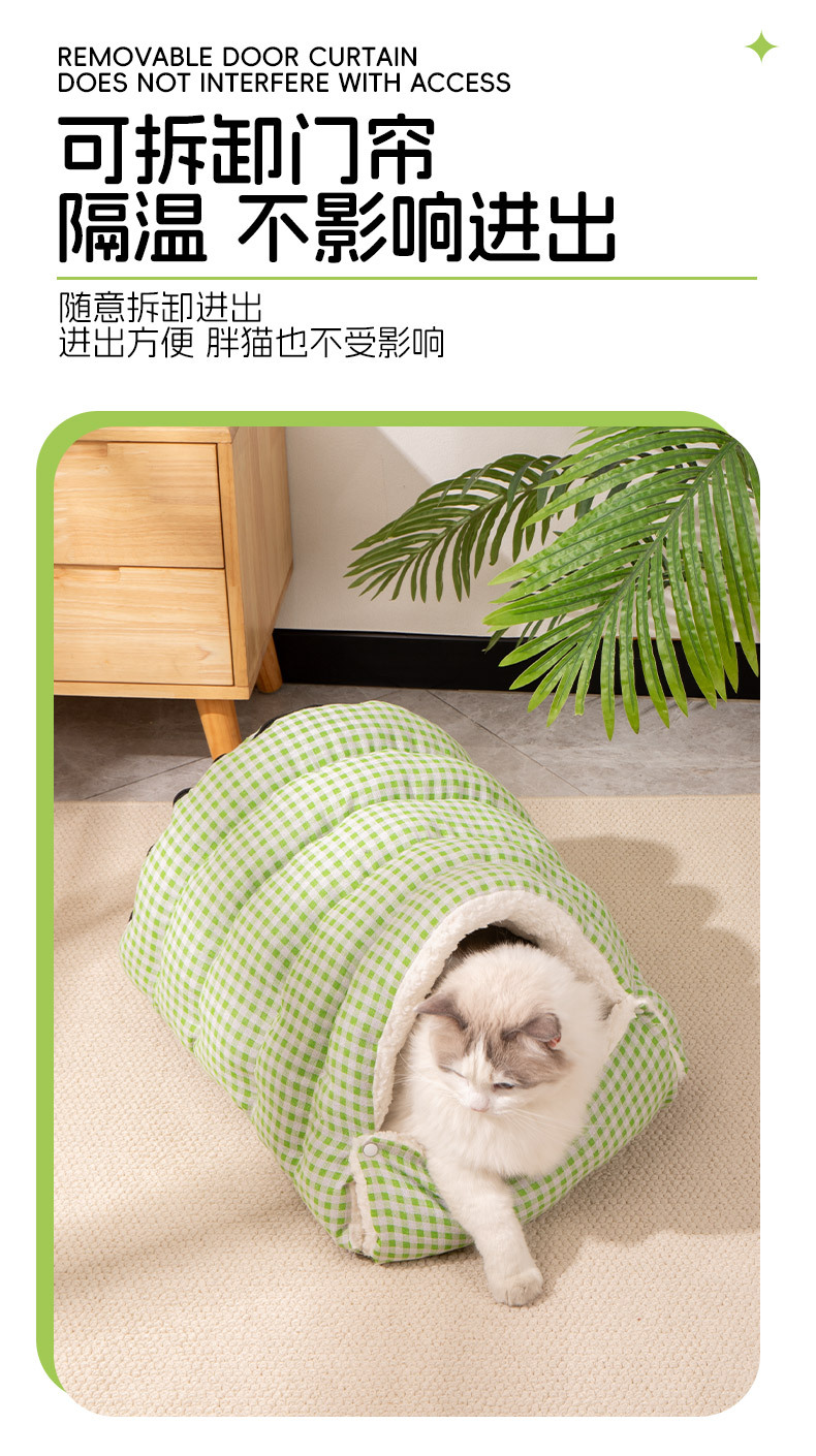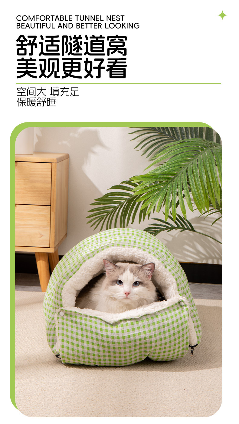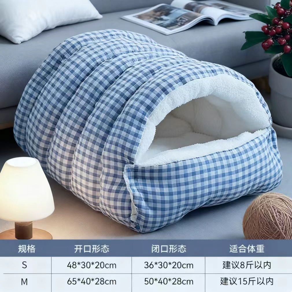 고양이 침대 겨울용 따뜻한 침낭 반밀폐형 안전 탈부착 가능 사계절 사용 가능 고양이 침대 강아지 침대 고양이 집 매트