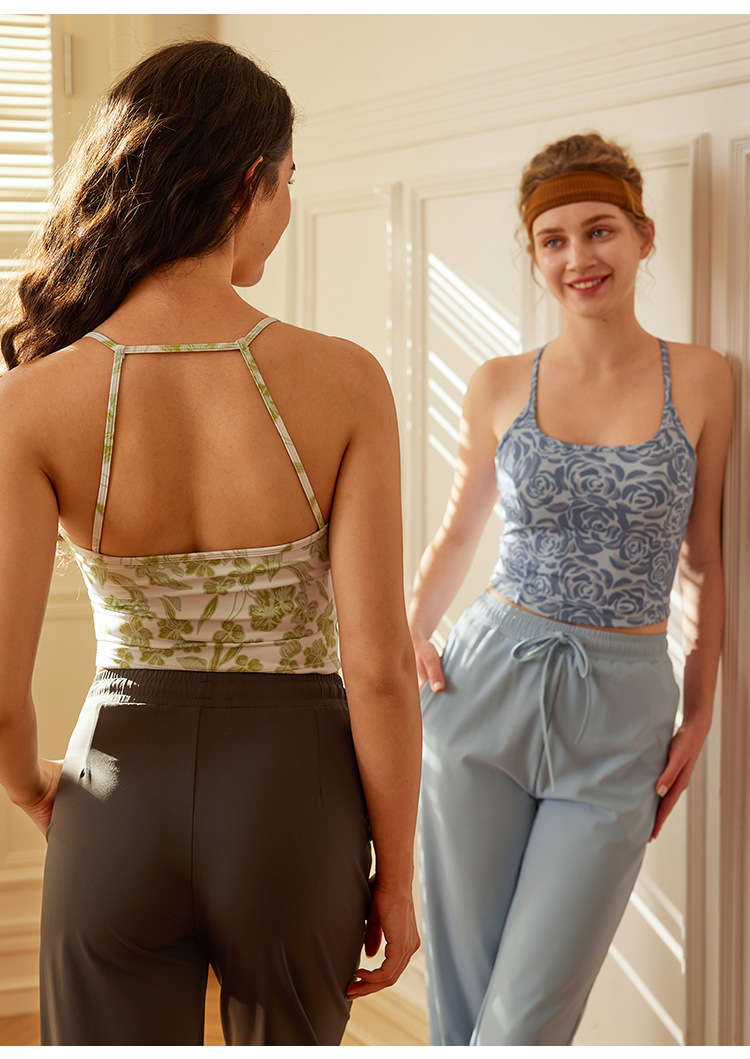 인쇄 된 유럽과 미국의 섹시한 백 스포츠 탑 여성 외부 조끼 대형 백리스 요가 옷 스파이스 걸스 피트니스 속옷 여성스토어 가기