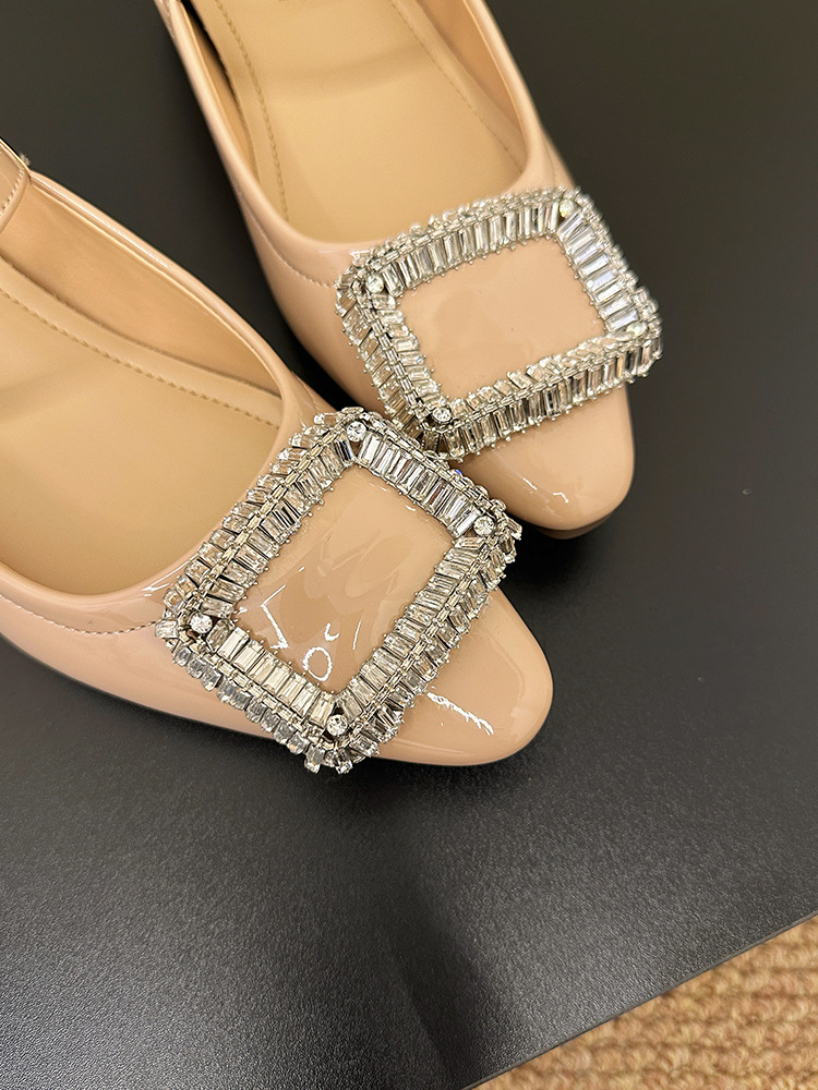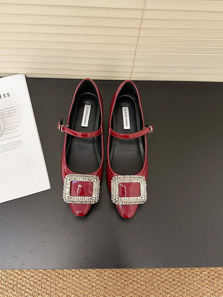 여성 특허 가죽 버클 스트랩 2025 새로운 프랑스 스타일 라인스톤 플랫 메리 제인 여성 신발