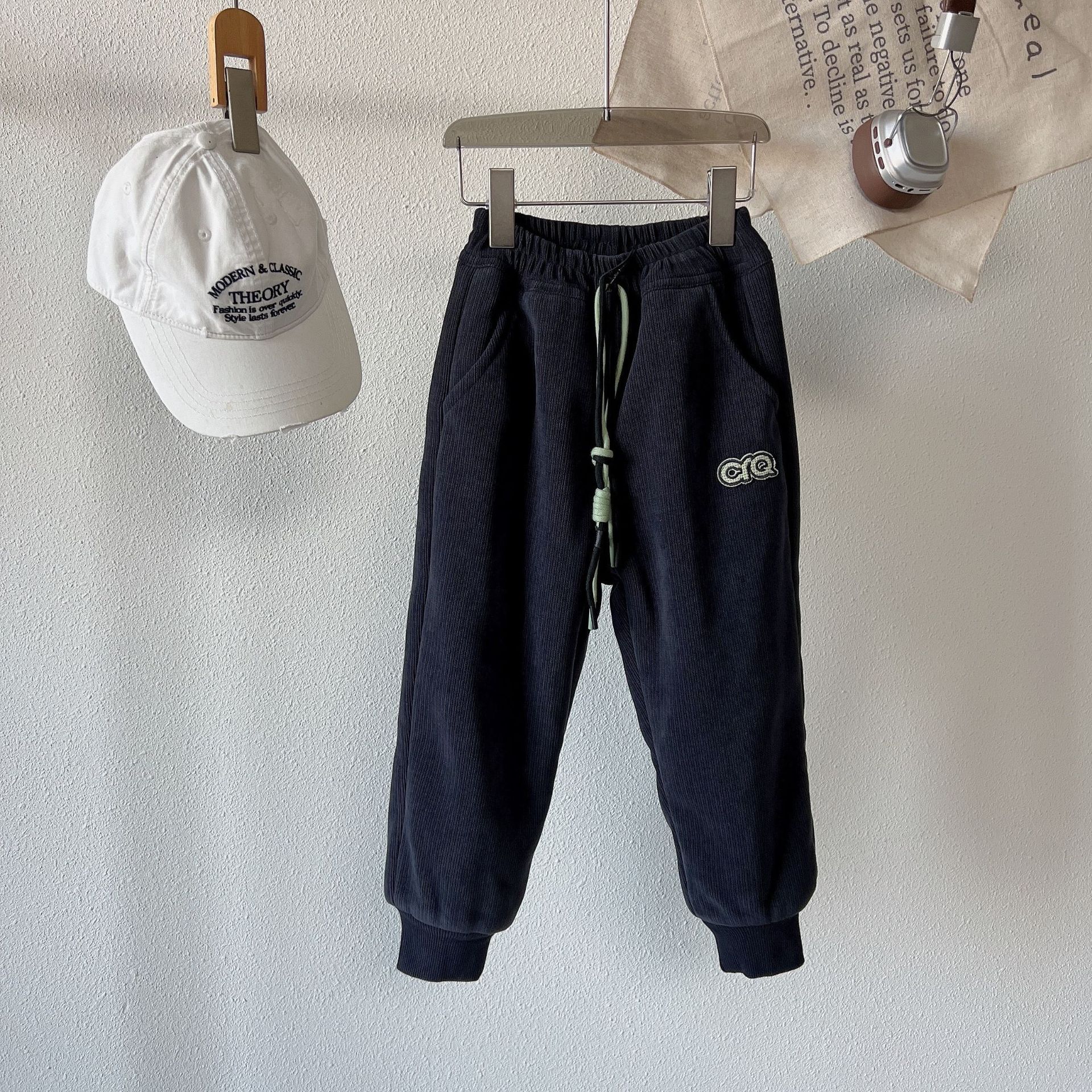 아동용 바지 2025 남녀공용 겨울 신상품 75185 라벨형 중대형 아동용 플러스 퍼 한국 스타일 다용도 스웨트팬츠