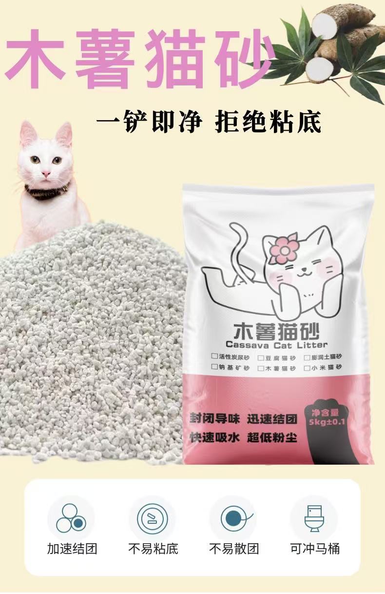 도매 타피오카 고양이 모래 큰 봉지 10kg 식물 혼합 고양이 모래 나트륨 기반 탈취제 비 스틱 바닥 먼지없는 애완 동물 소변 모래