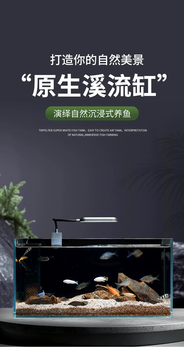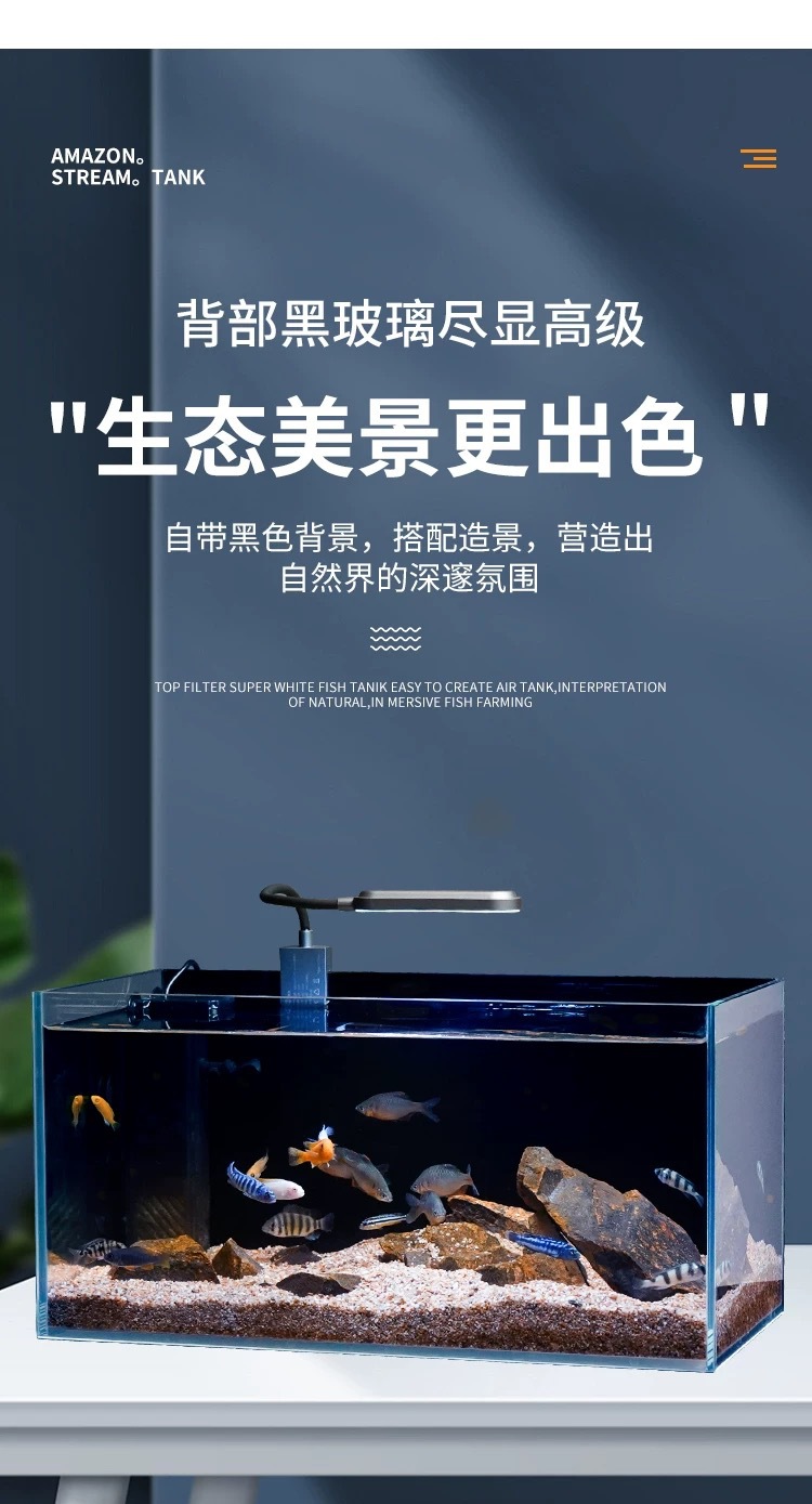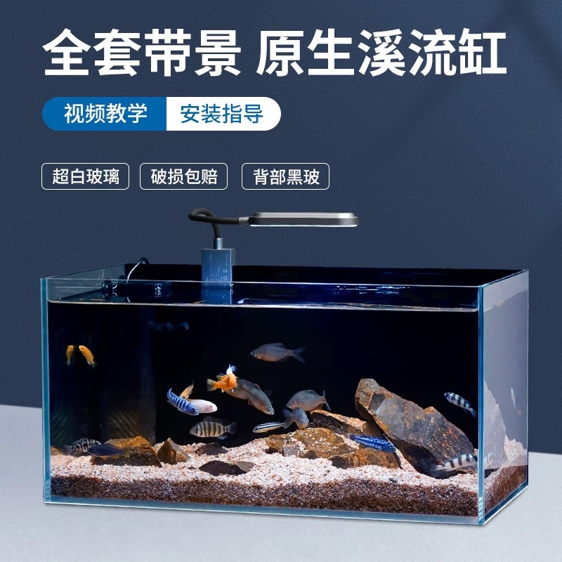 물고기 탱크 스트림 탱크 슈퍼 화이트 유리 풀 세트 조경 탱크 가정용 거실 중소 데스크톱 물고기 탱크 통합 필터 탱크스토어 가기