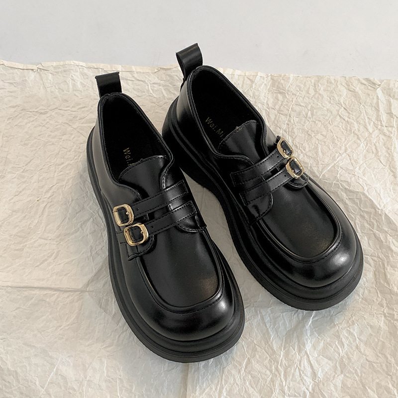 브라운 프렌치 레트로 두꺼운 밑창 여성용 가죽 신발 2025년 신상 가을용 스커트와 잘 어울리는 영국풍 두꺼운 굽 단화