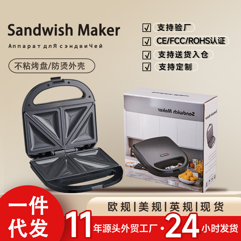贸亚马逊十合一早餐机三明治机 多功能烤面包华夫饼机双面加热甜甜圈蛋糕机吐司机