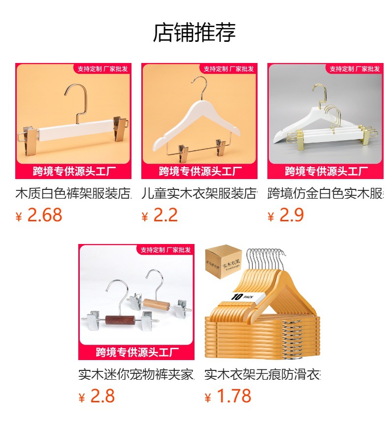 단단한 나무 의류 매장 바지 랙 호텔 바지 클립 가정용 나무 옷걸이 원활한 나무 미끄럼 방지 스커트 랙 공장 도매스토어 가기