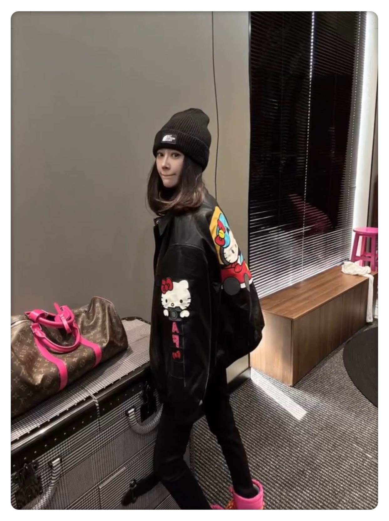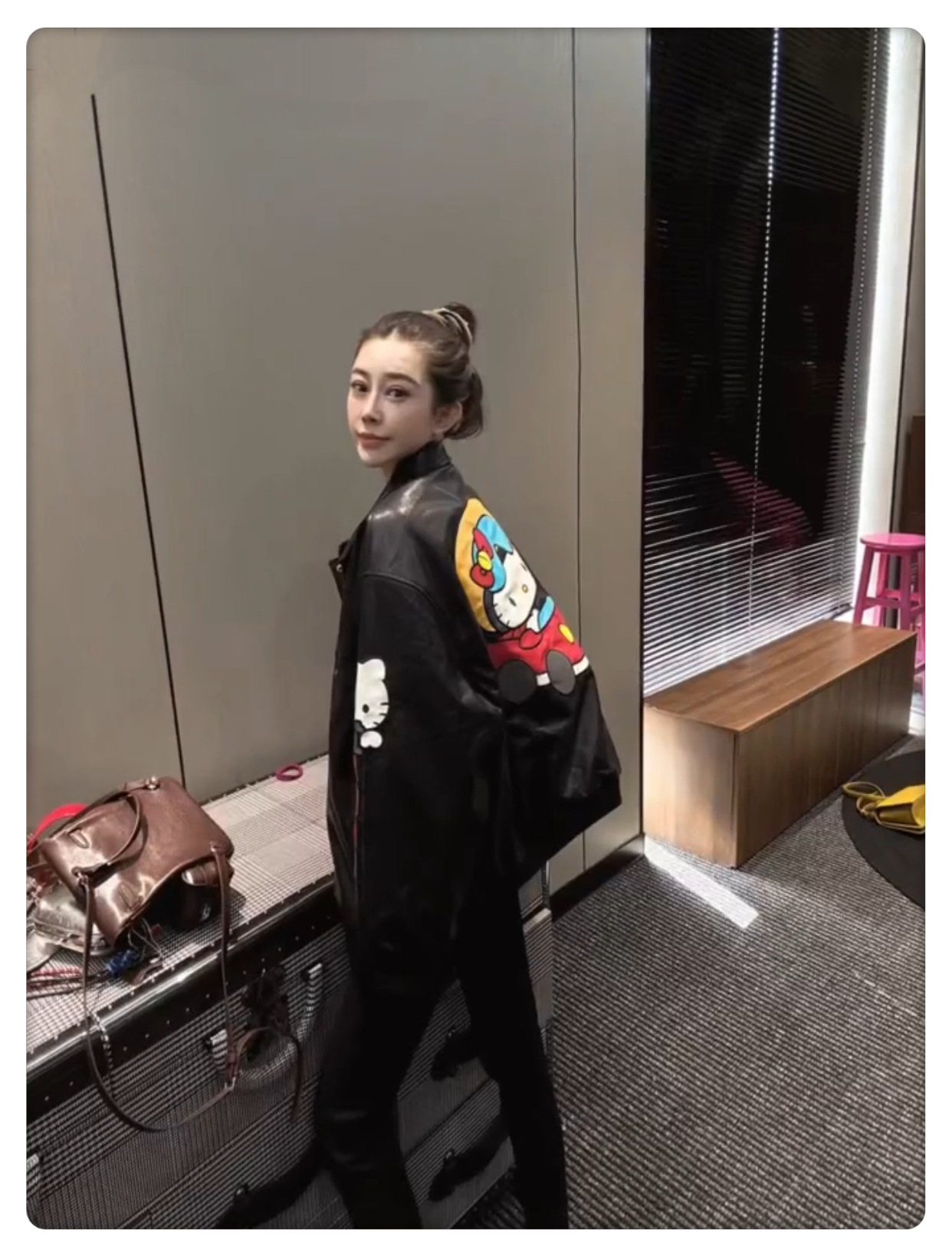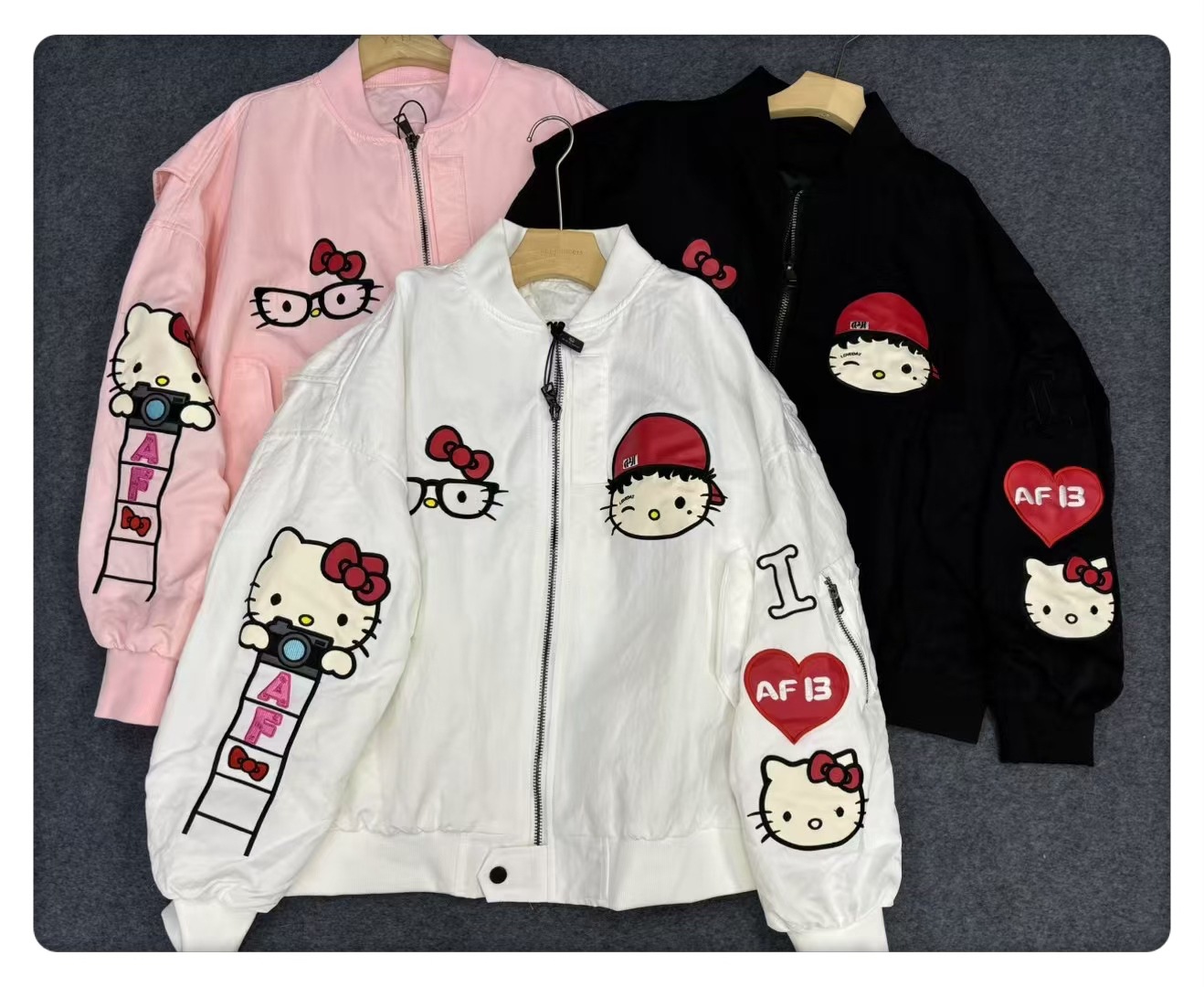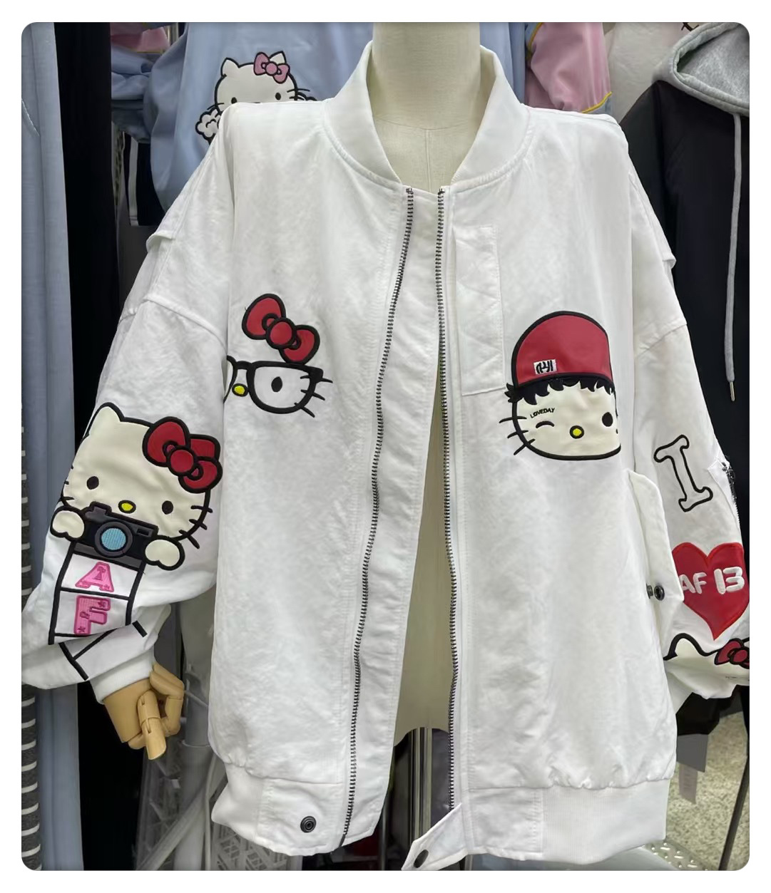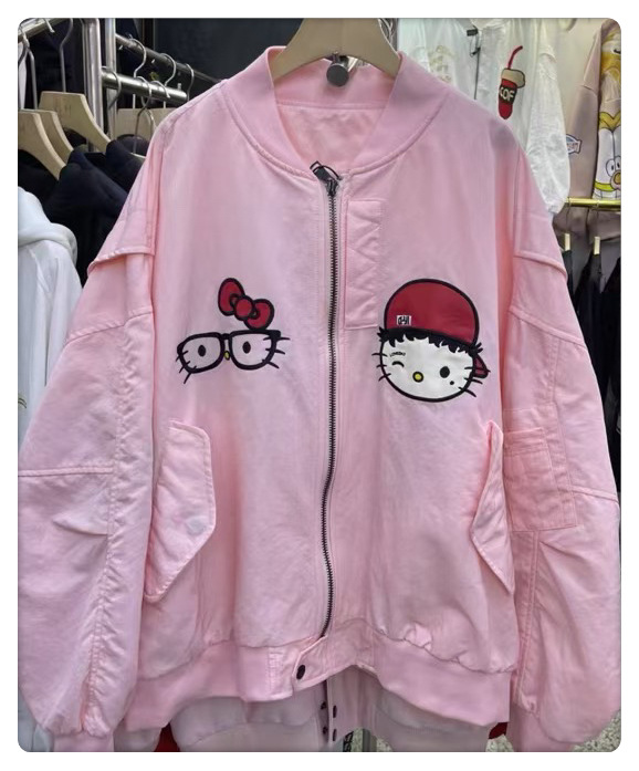 유럽 PU 가죽 자켓 여성의 2025 봄 새로운 블랙 무거운 자수 만화 고양이 느슨한 재킷 트렌디스토어 가기