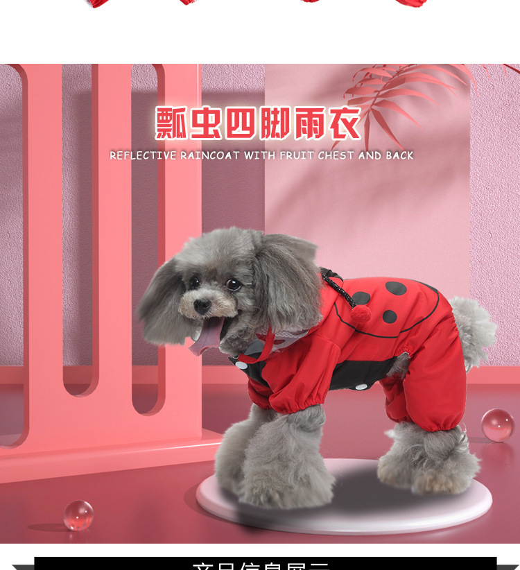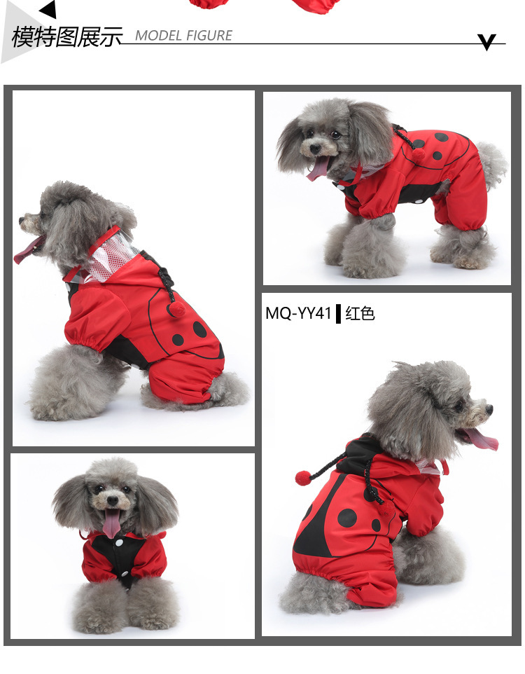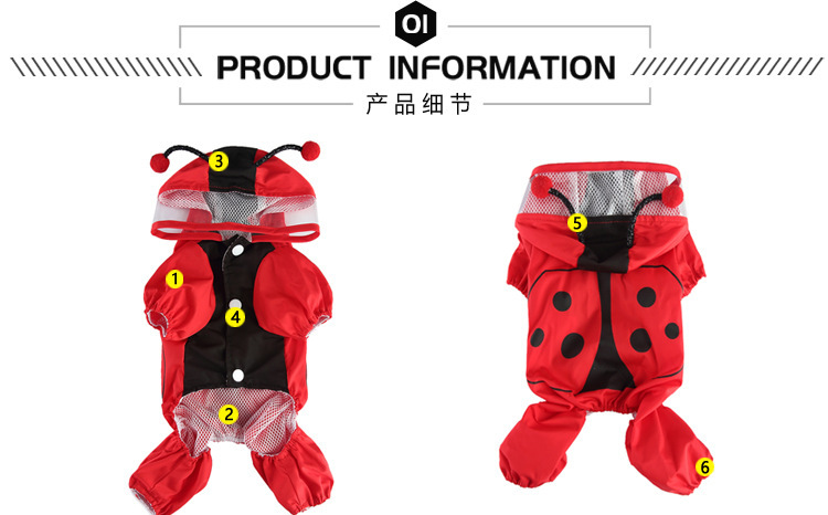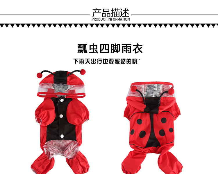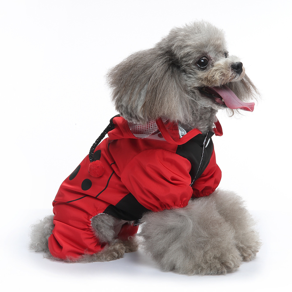 귀여운 무당 벌레 비오는 날 애완 동물 옷 방수 접이식 외출 휴대용 고양이 개 유니버설 애완 동물 비옷스토어 가기