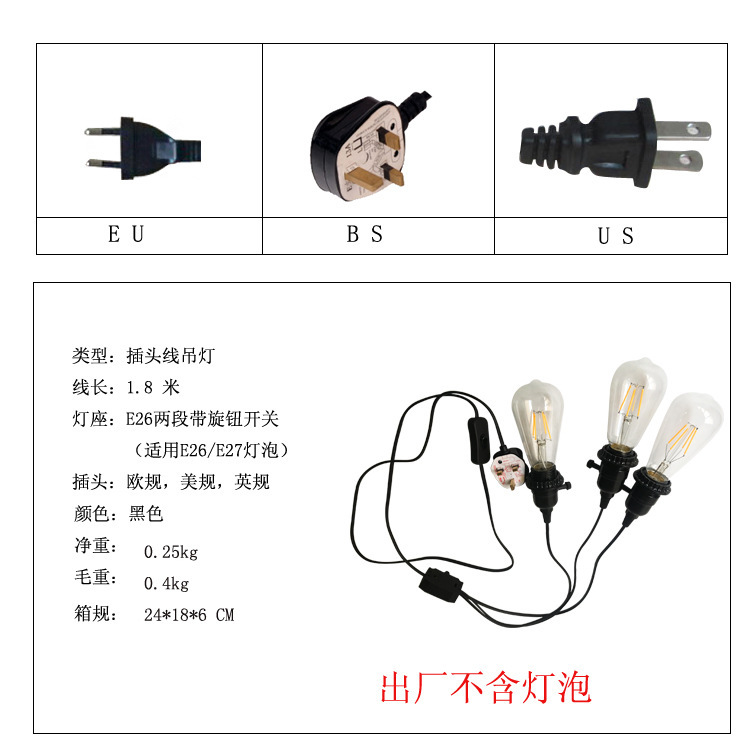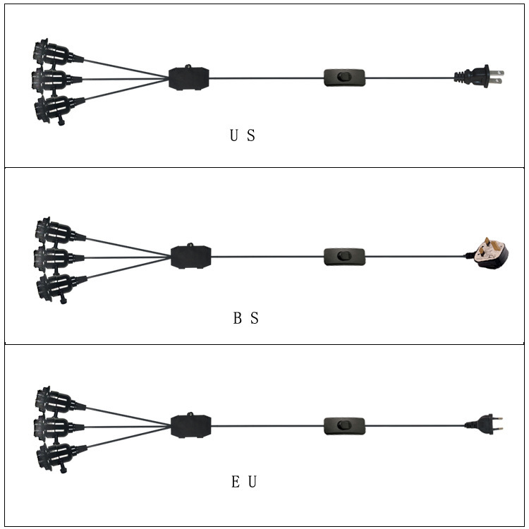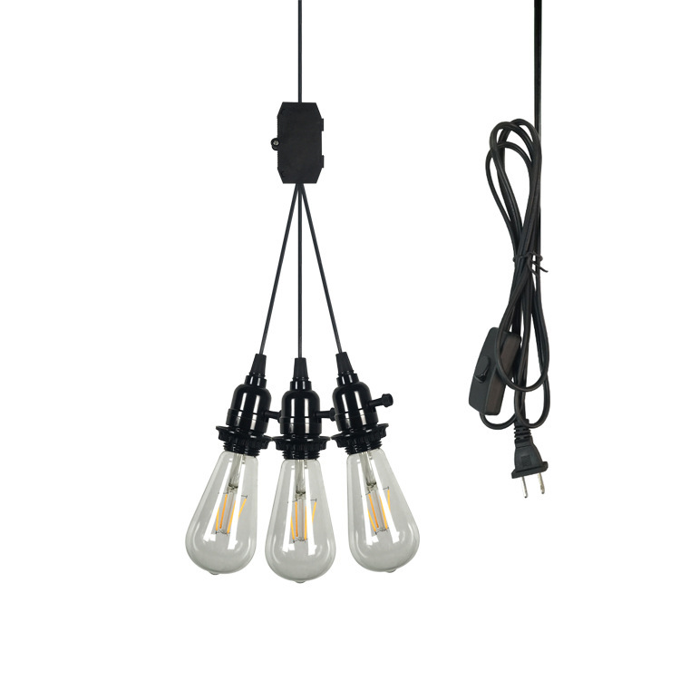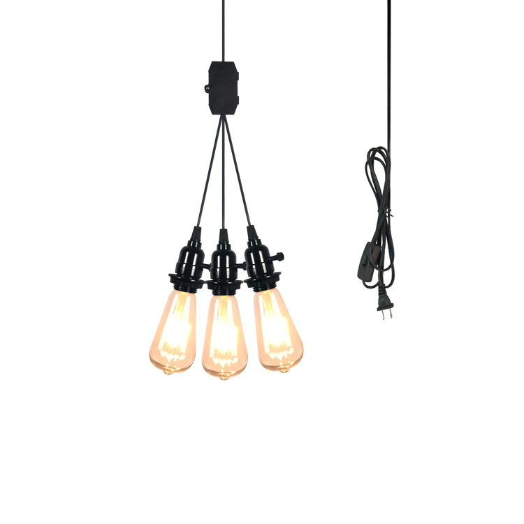 레트로 산업 스타일 샹들리에 창조적 인 성격 멀티 헤드 원 드래그 세 영국 규칙 카페 레스토랑 램프 플러그 라인 작은 샹들리에