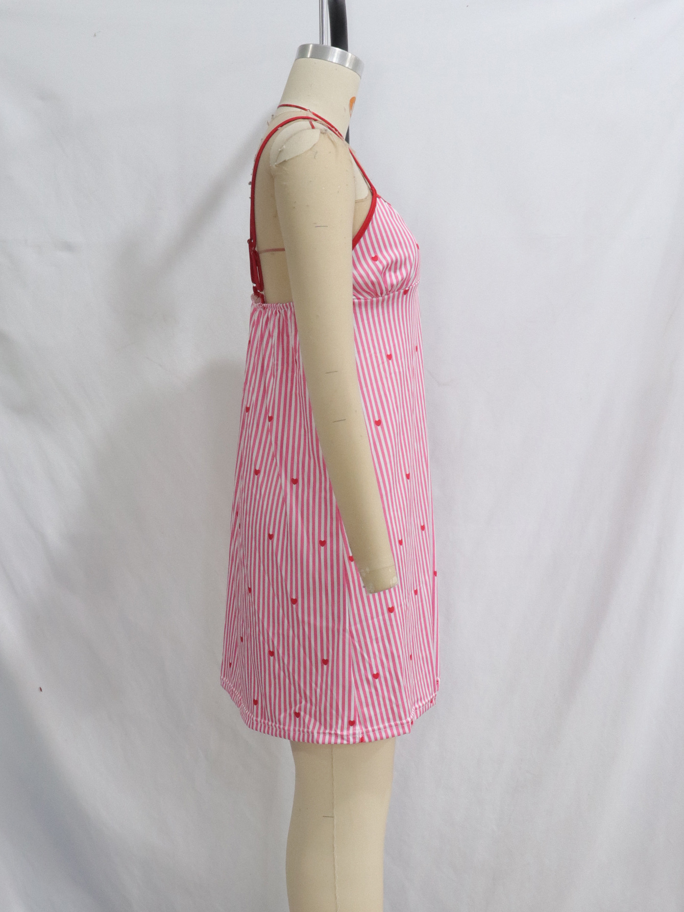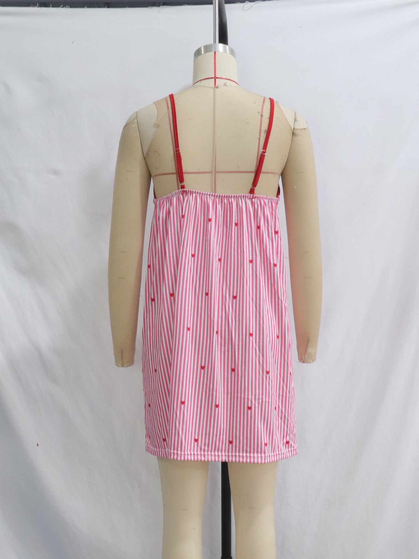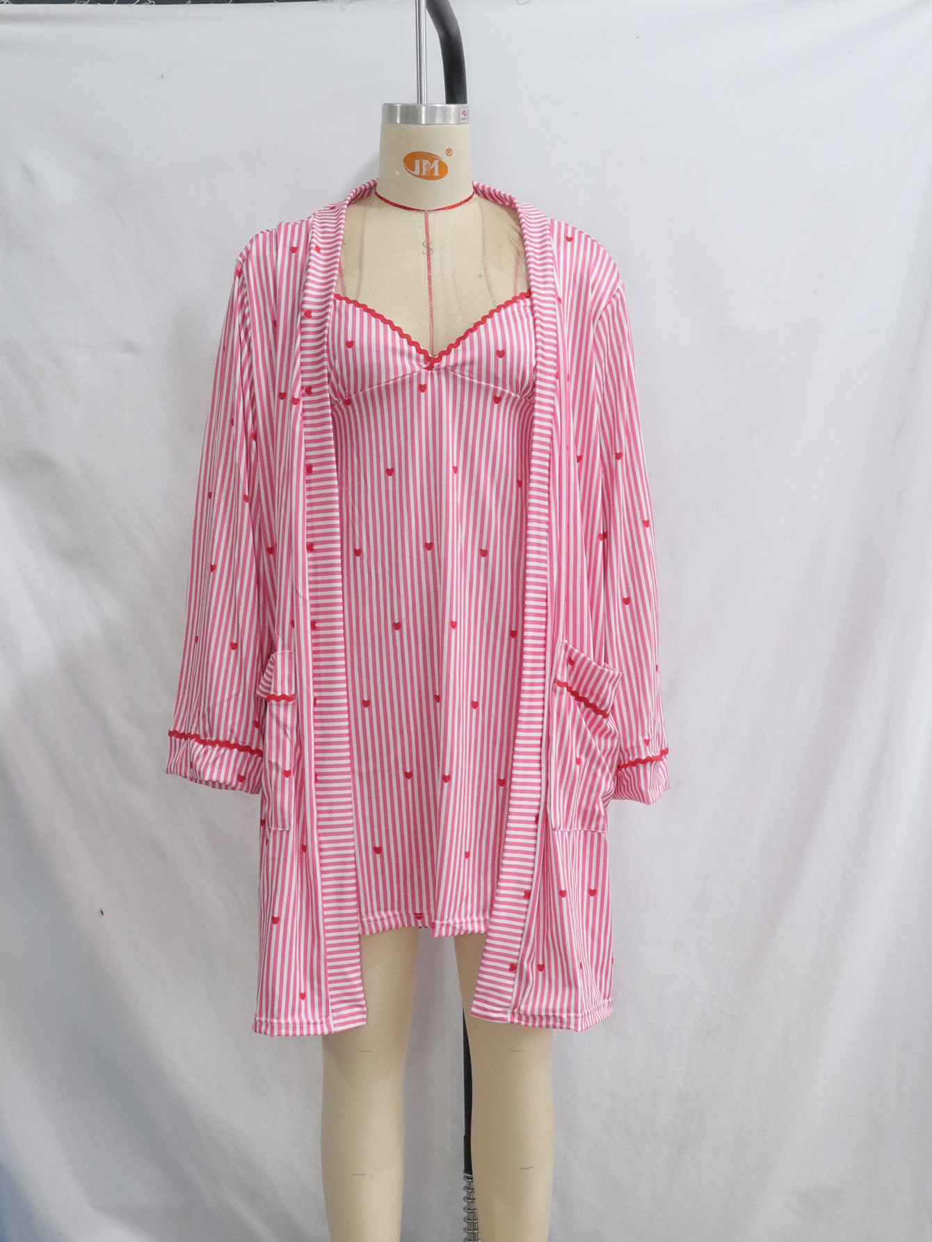 아마존 봄과 여름 새로운 핑크 사랑 줄무늬 카디건 귀여운 소녀 캐주얼 홈 세트 나이트 드레스