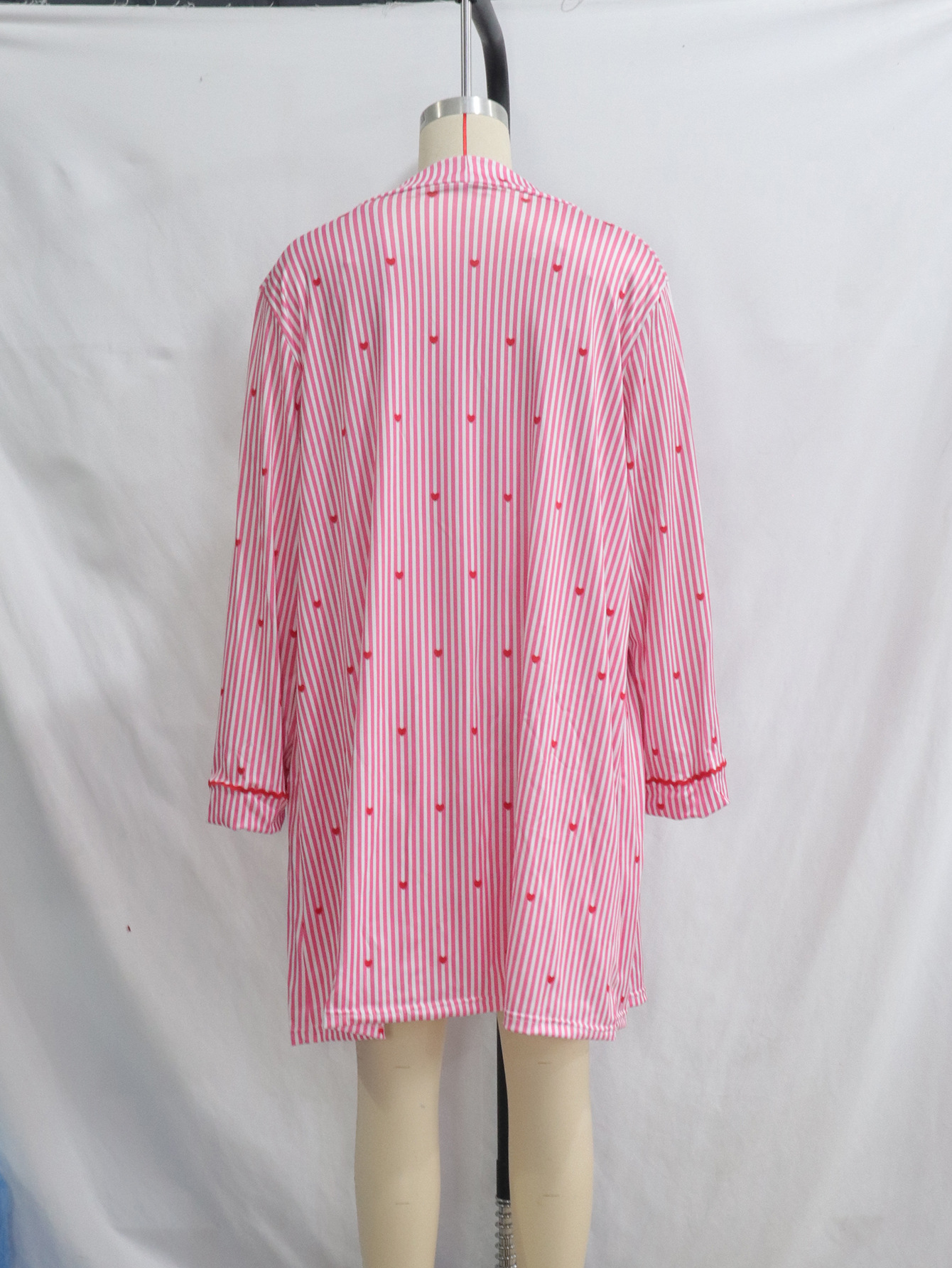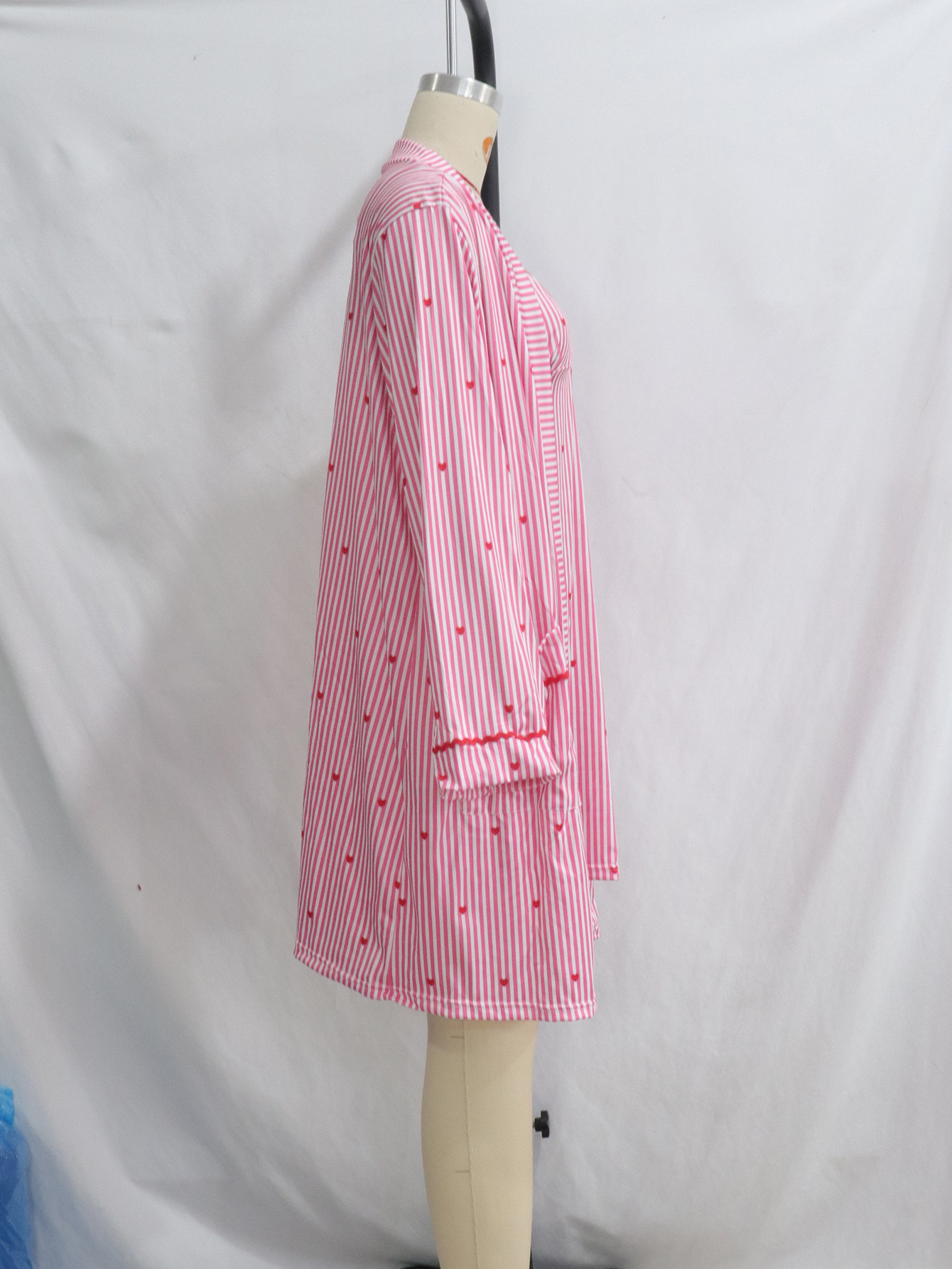 아마존 봄과 여름 새로운 핑크 사랑 줄무늬 카디건 귀여운 소녀 캐주얼 홈 세트 나이트 드레스스토어 가기