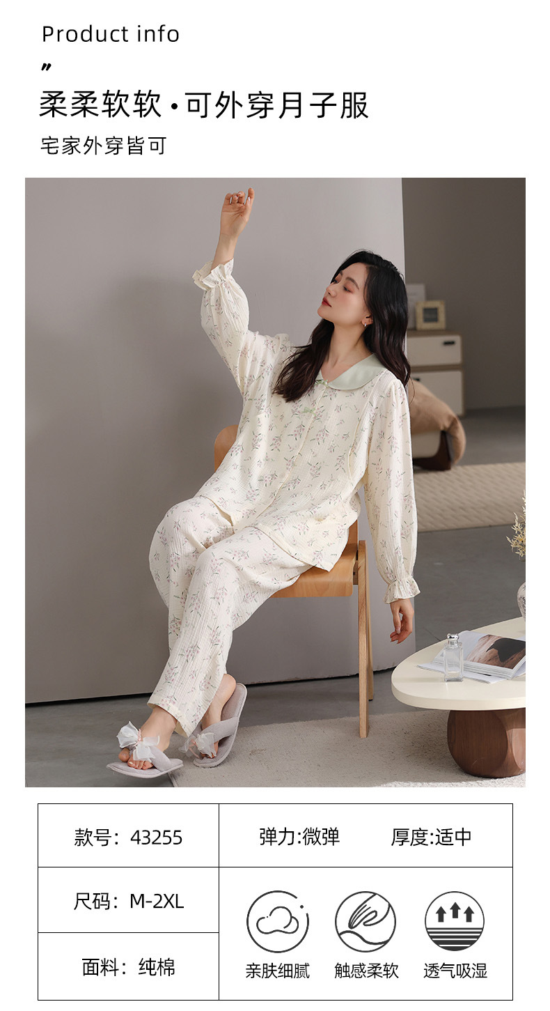 루나 세트 산후 면 원사 임산부 잠옷 봄과 가을 임산부 목화 수유 요양원 세트 세트