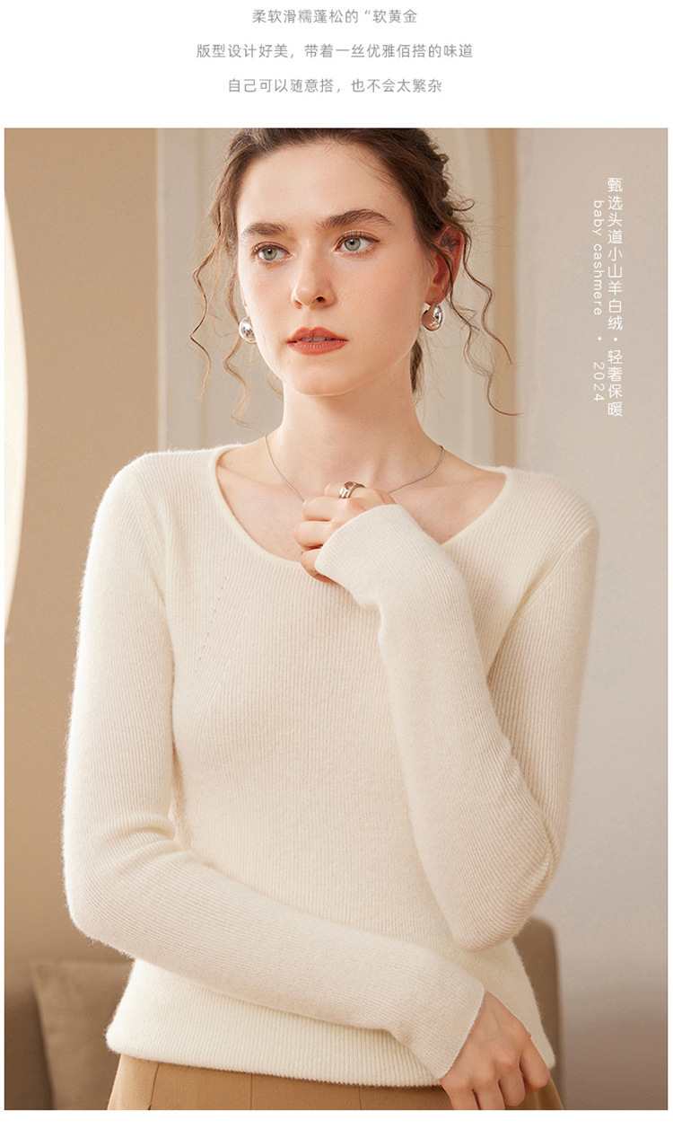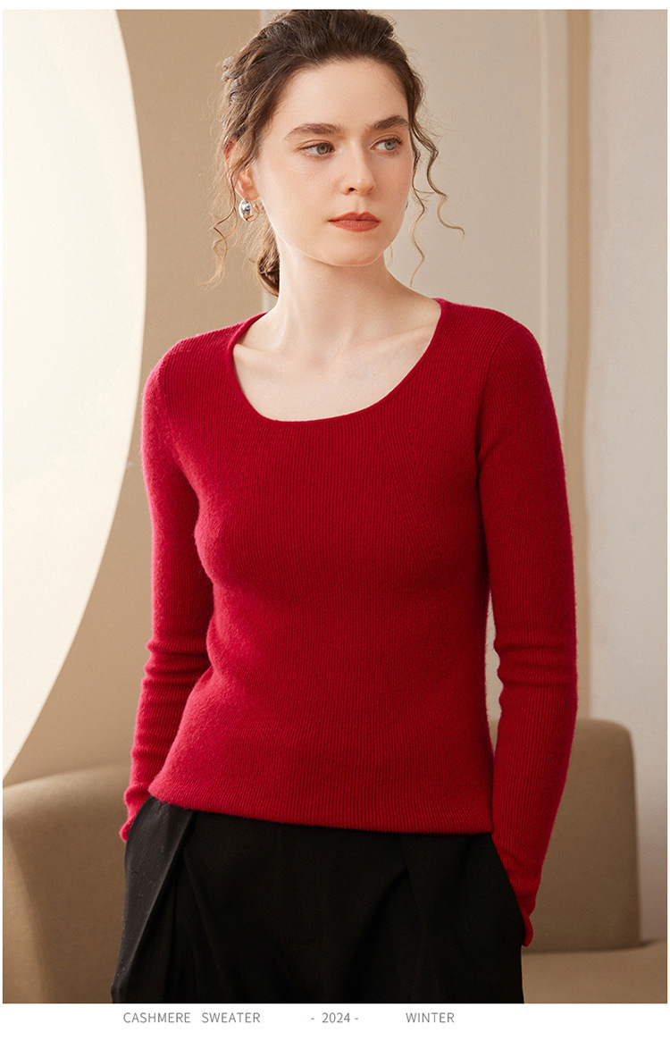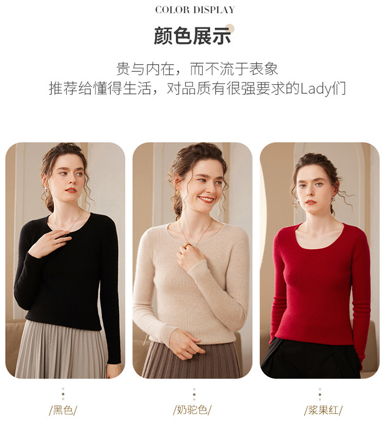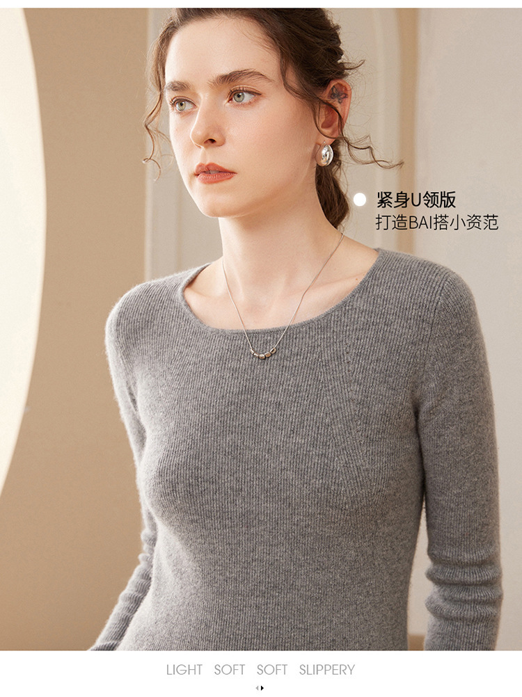 U-넥 캐시미어 니트베이스 셔츠 여성용 긴팔 슬림 핏 인테리어 유행 간단하고 편안한 피부 친화적 인 스웨터 캐시미어 스웨터스토어 가기