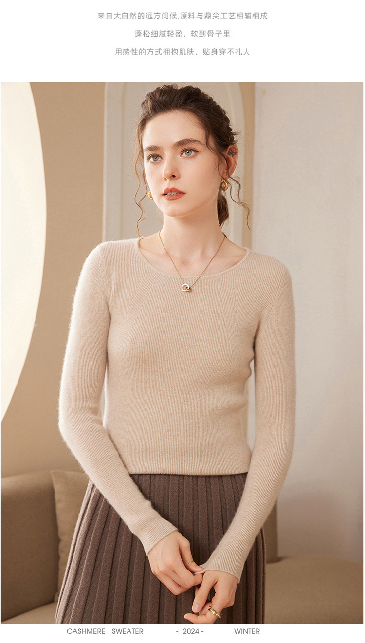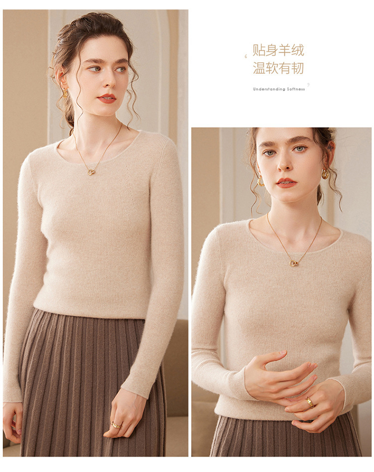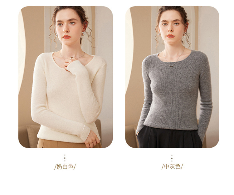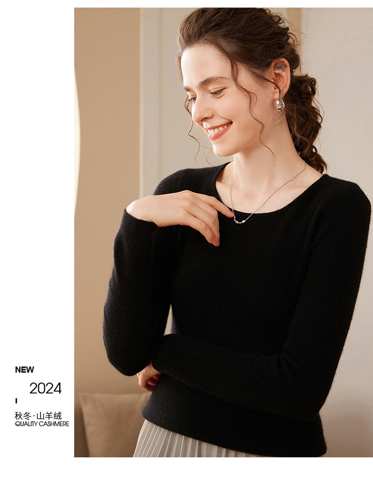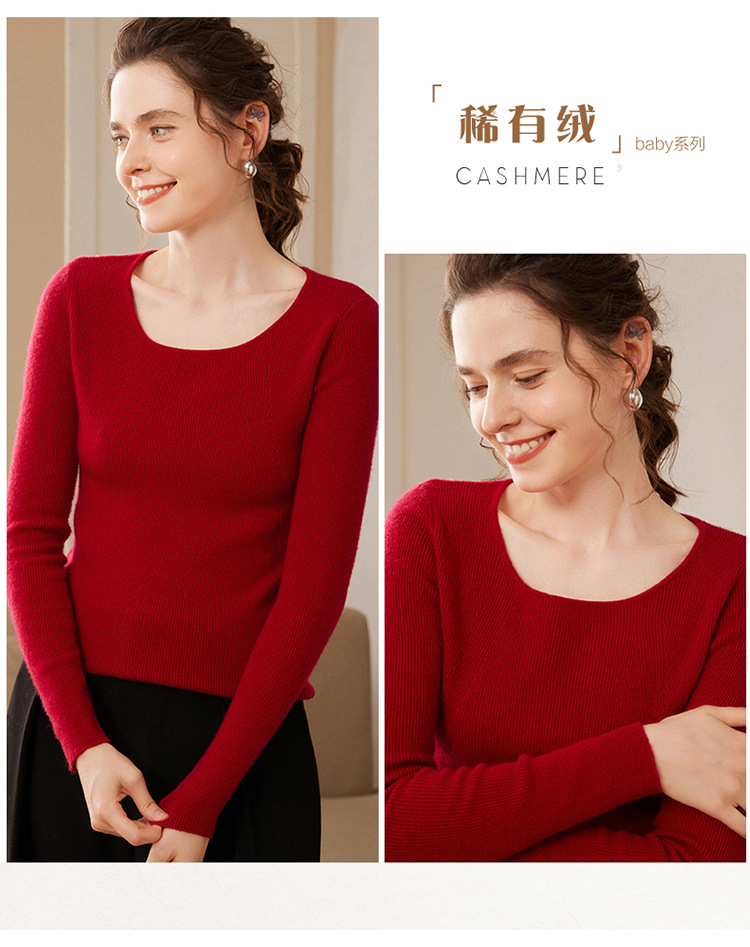 U-넥 캐시미어 니트베이스 셔츠 여성용 긴팔 슬림 핏 인테리어 유행 간단하고 편안한 피부 친화적 인 스웨터 캐시미어 스웨터스토어 가기