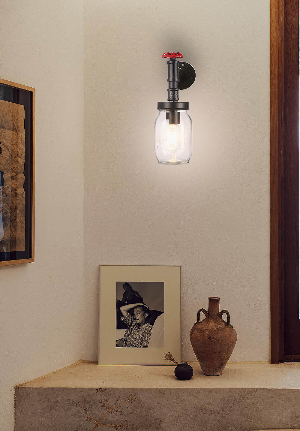 국경 새로운 미국 산업 바람 유리 벽 램프 침대 옆 벽 배경 벽 실내 철 석공 유리 벽 램프