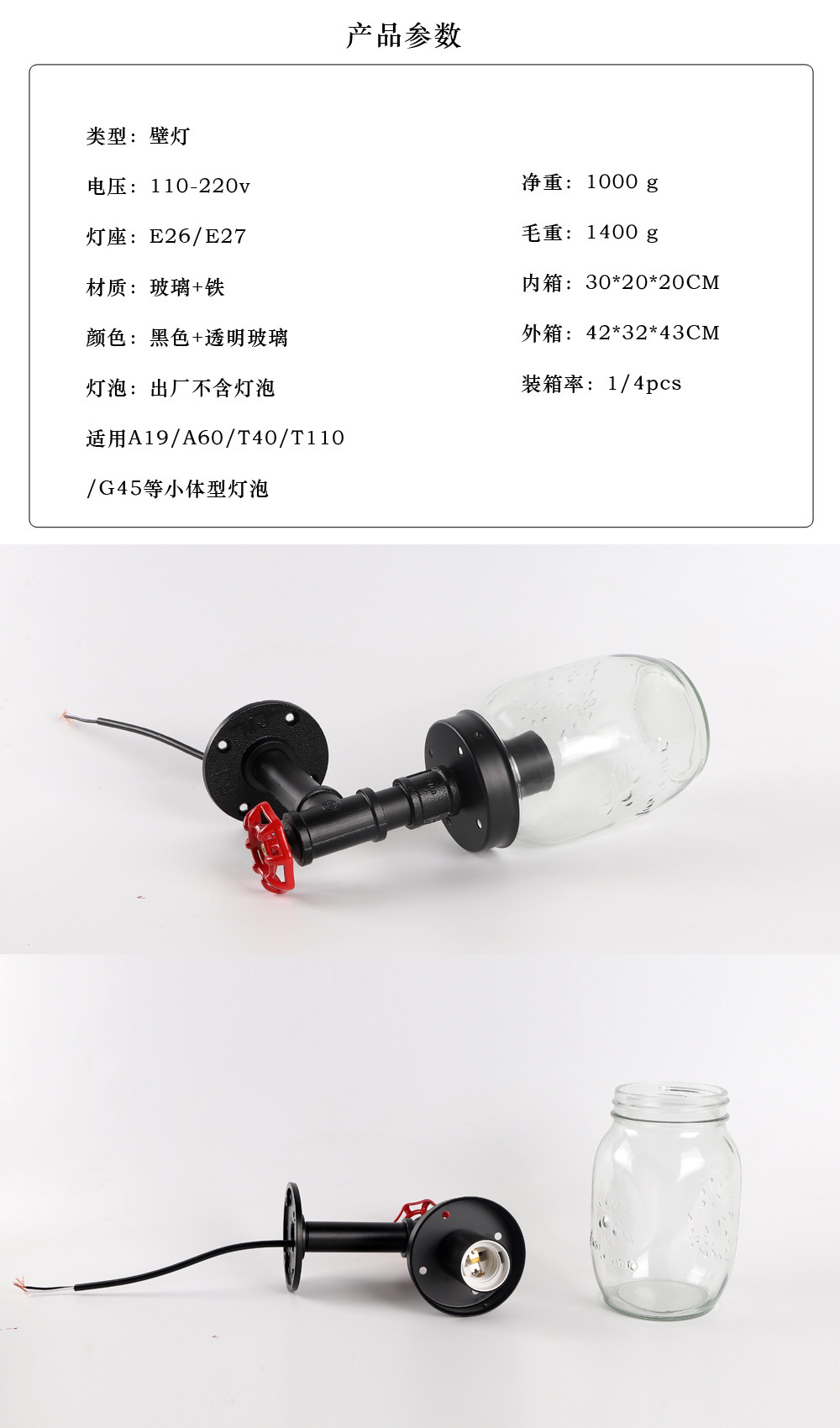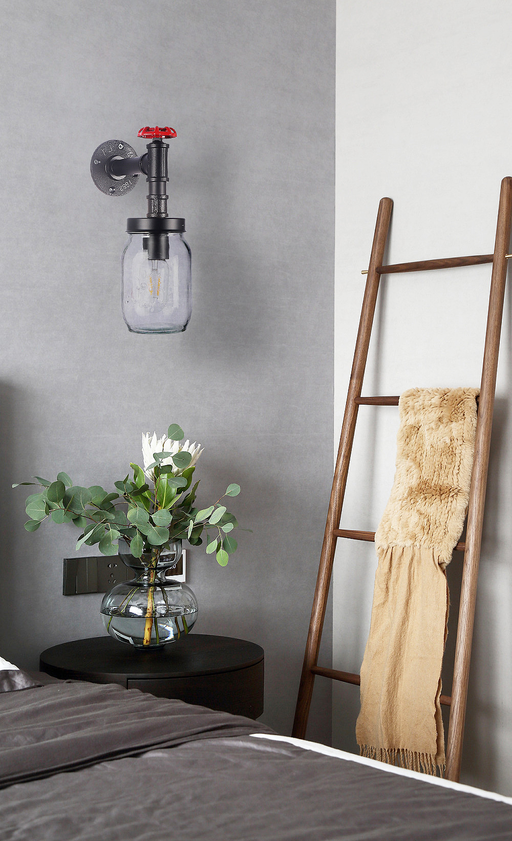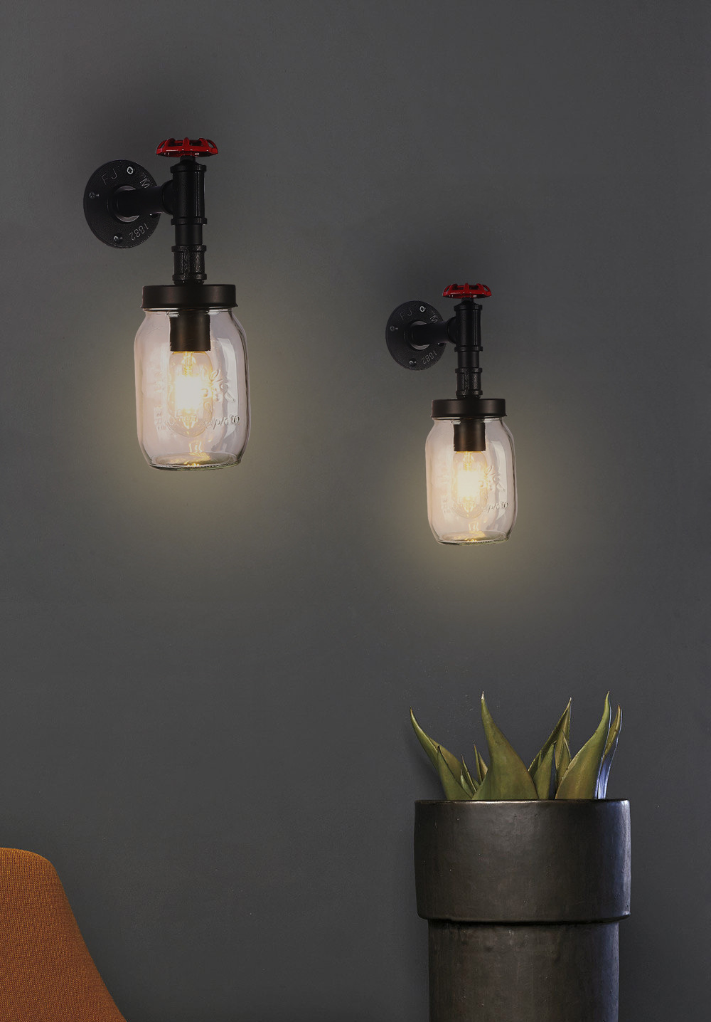 국경 새로운 미국 산업 바람 유리 벽 램프 침대 옆 벽 배경 벽 실내 철 석공 유리 벽 램프스토어 가기