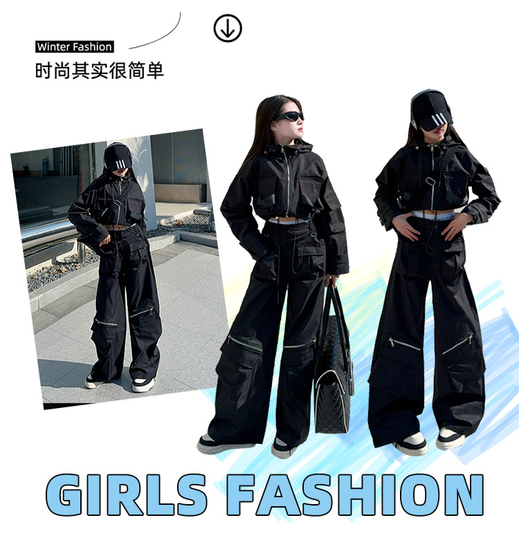소녀 세트 2025 새로운 어린이 유행 운동복 중 · 대형 아동복 봄 · 가을 공구 투피스 유행