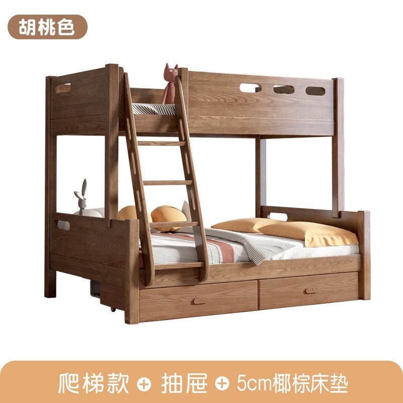 모든 단단한 나무 어린이 침대 이층 침대 침대 2 층 침대 성인 작은 아파트 전체 2 층 높고 낮은 침대