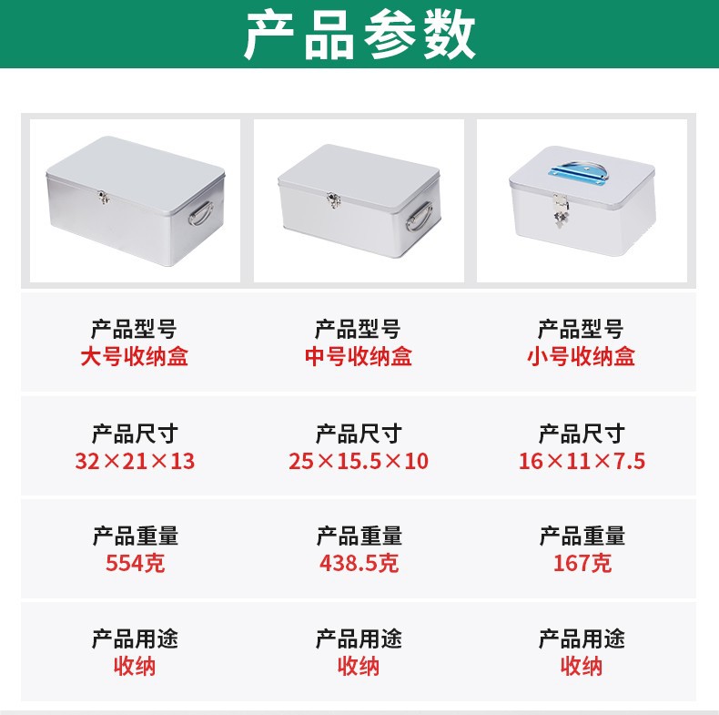 두꺼운 도구 상자 수동 케이스 보관 케이스 휴대용 흰색 철 케이스 잠금 장치