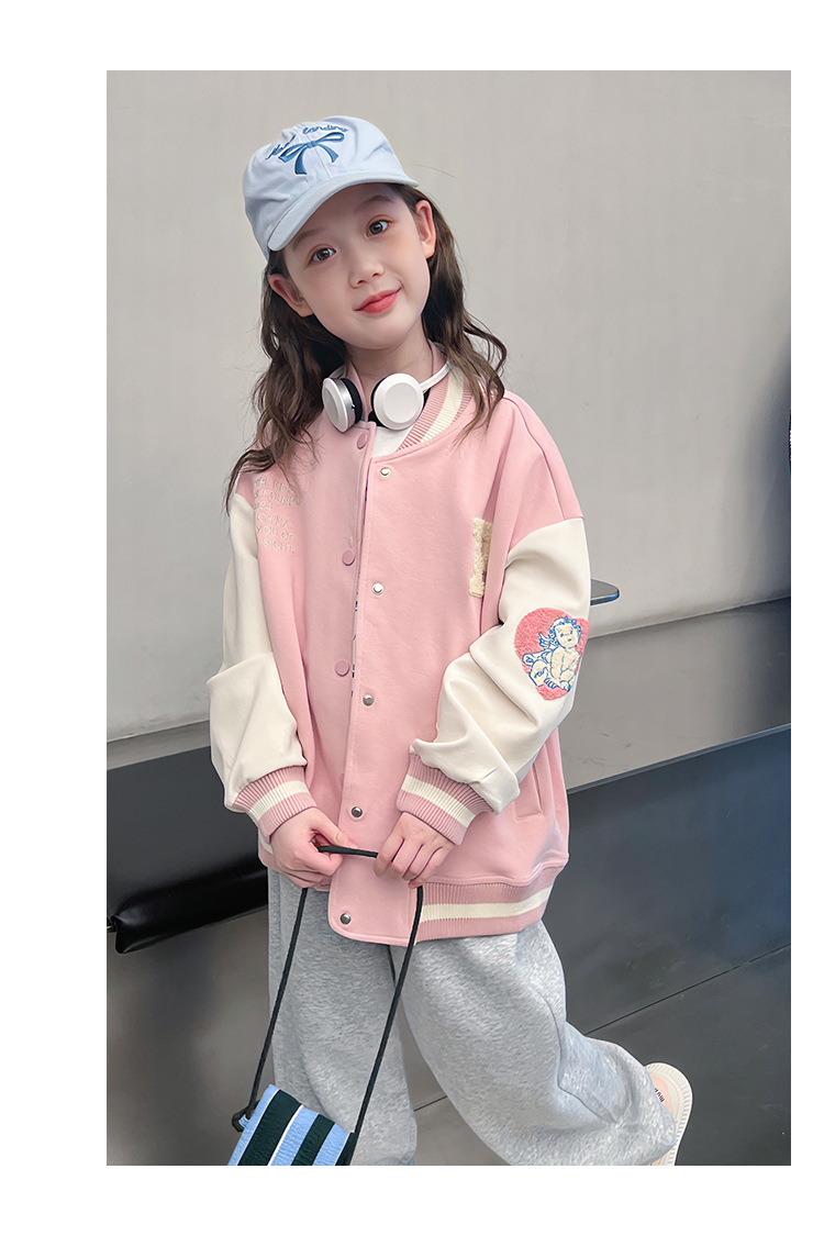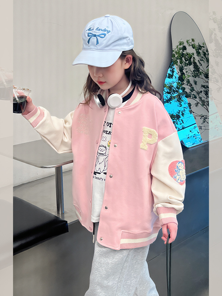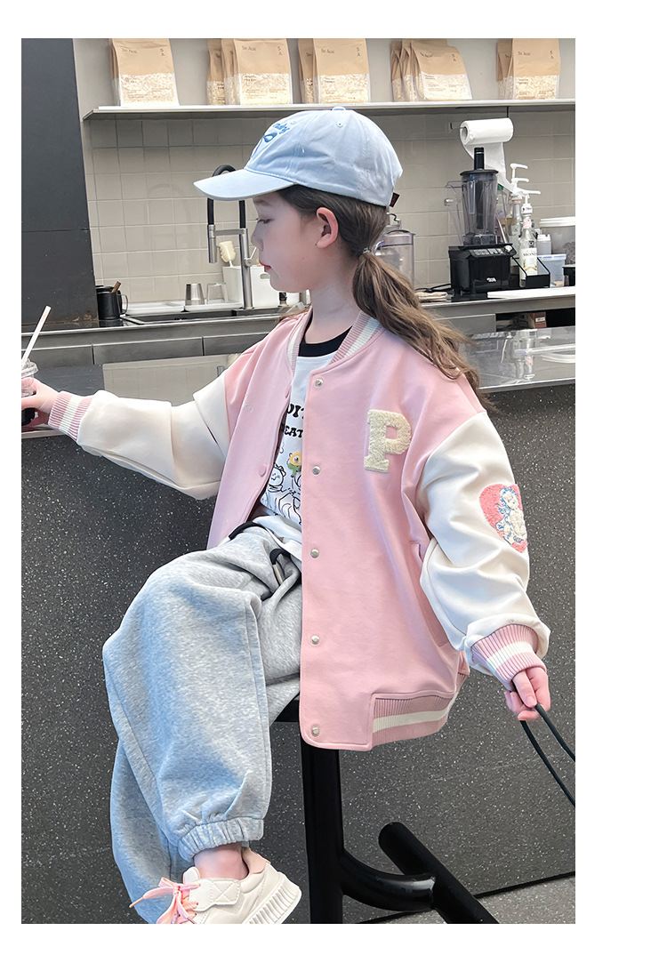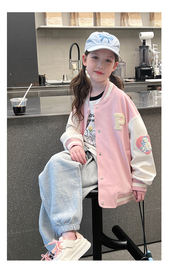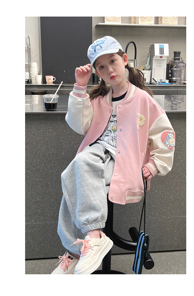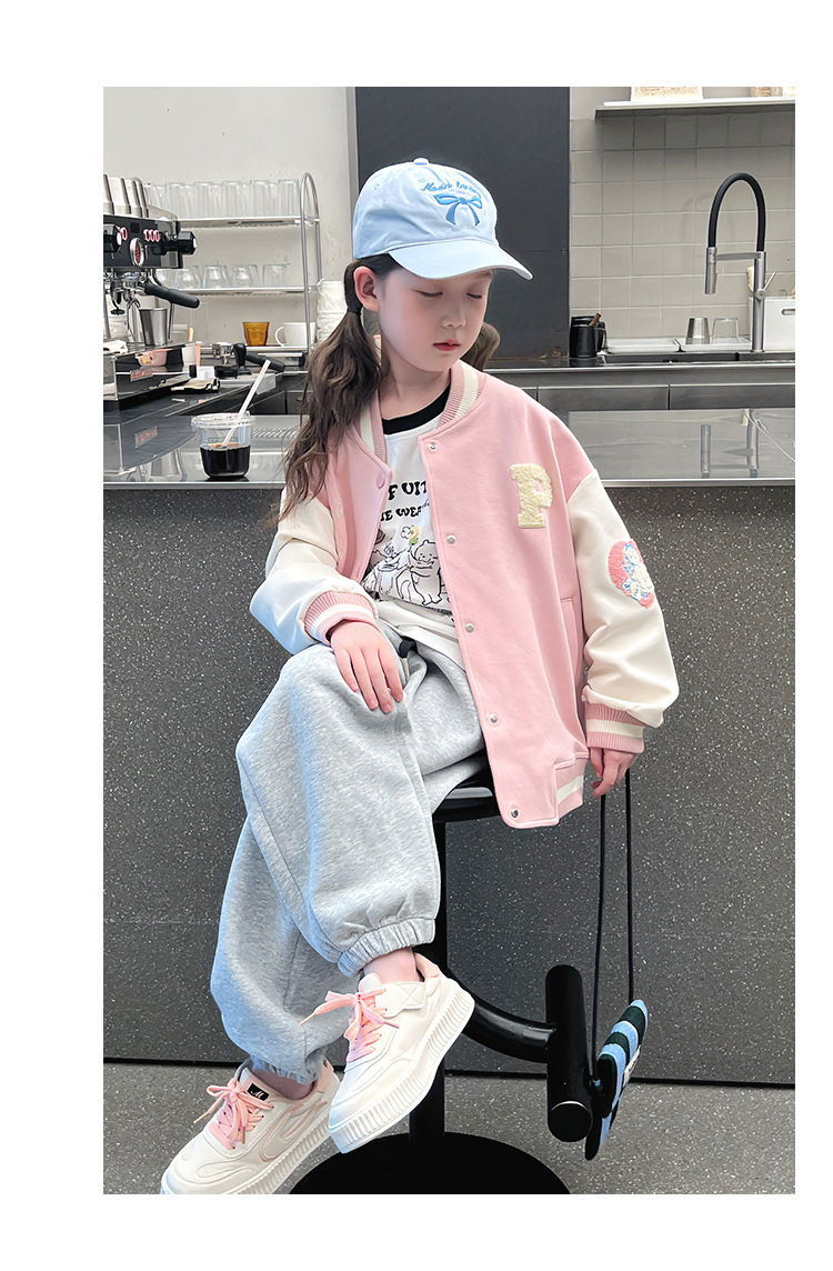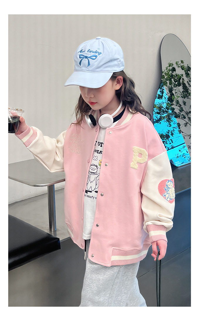 소녀 서양식 야구 세트 큰 아동복 느슨한 카디건 어린이 스포츠 탑 소녀 자켓 2025 봄 새로운 스타일스토어 가기