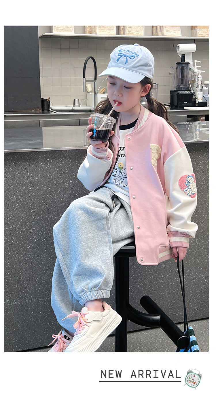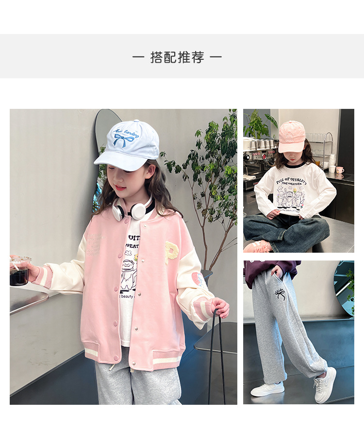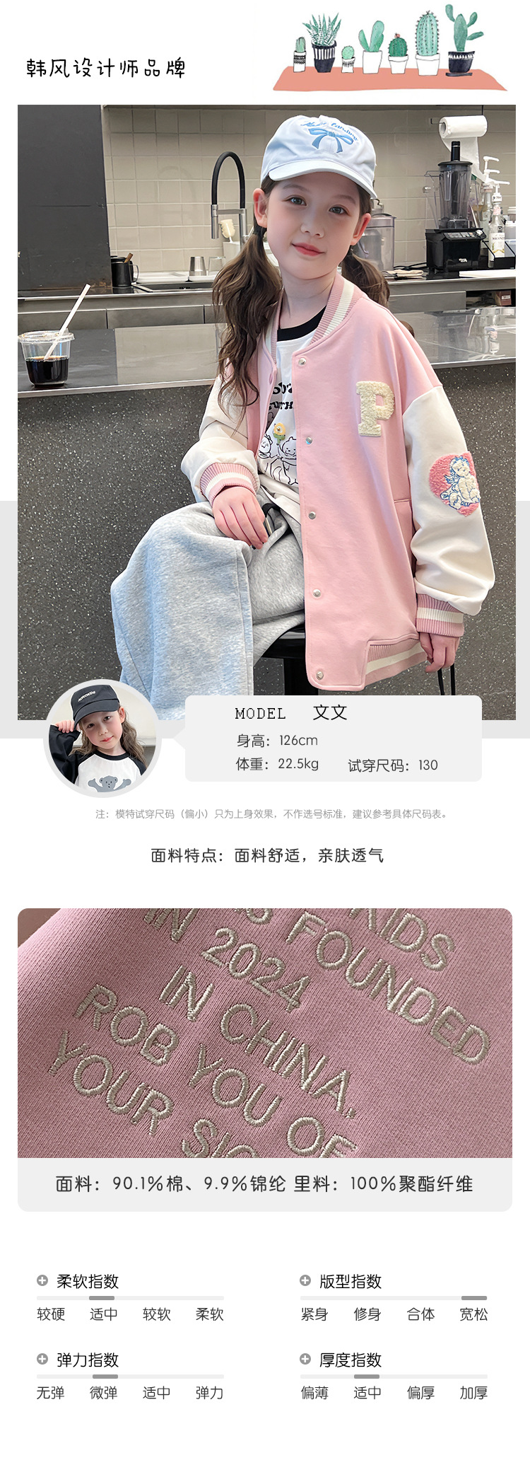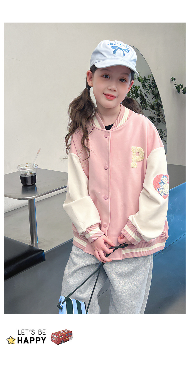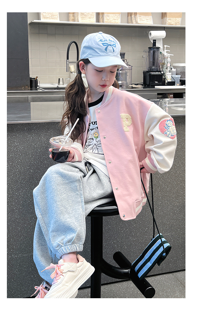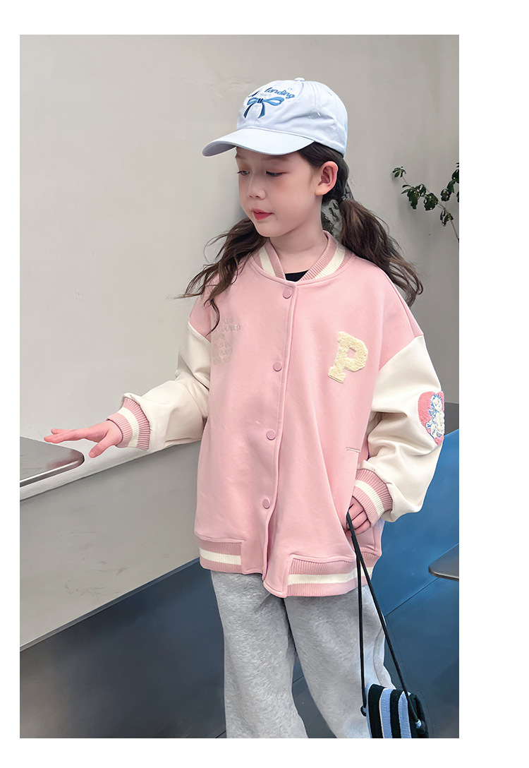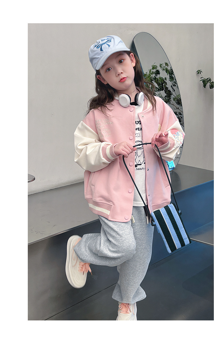 소녀 서양식 야구 세트 큰 아동복 느슨한 카디건 어린이 스포츠 탑 소녀 자켓 2025 봄 새로운 스타일스토어 가기