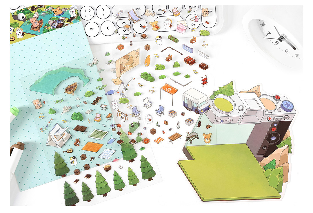 인페렐. 나는 오늘 사업을하고 있습니다. 6 폭탄 PET2.5D 조경 스티커 만화 야외 미니어처 학생 손 계정 스티커