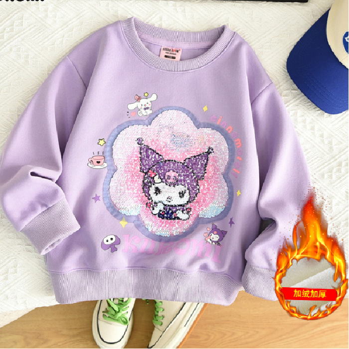 [플러스 벨벳] [재고] 새로운 가을 소녀 Wei yugui 개 변경 kulomi 긴소매 크루 넥 풀오버