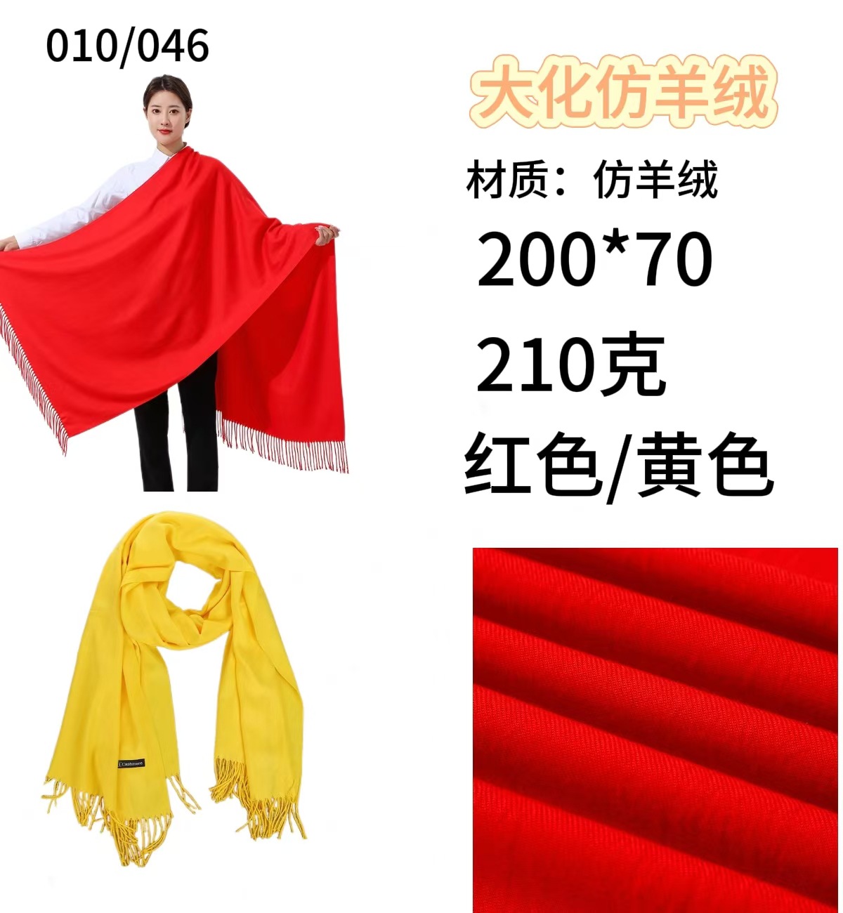 • 200*70cm Dahua 모조 캐시미어 [빨간색과 노란색]