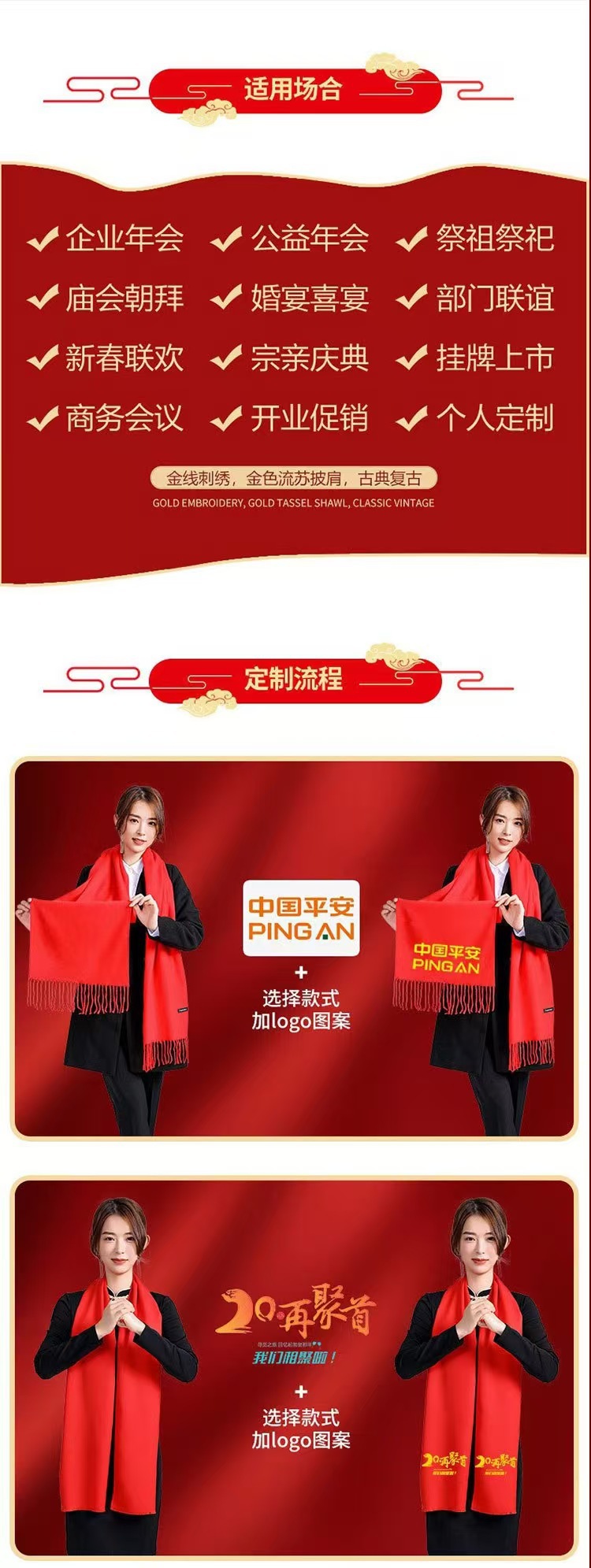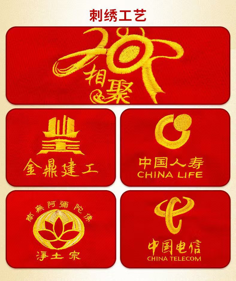 중국 빨간 스카프 인쇄 맞춤 로고 자수 회사 연례 회의 개회식