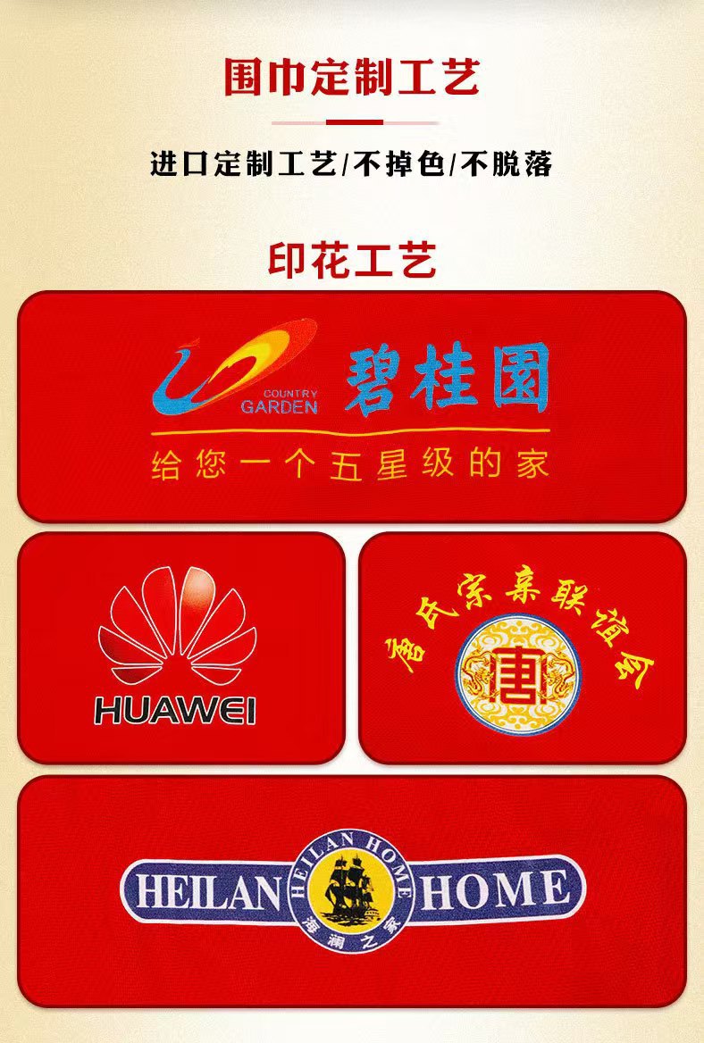 중국 빨간 스카프 인쇄 맞춤 로고 자수 회사 연례 회의 개회식스토어 가기