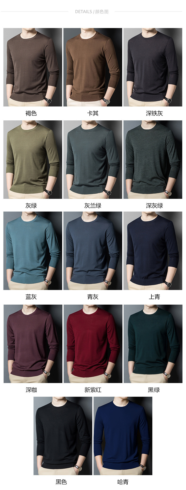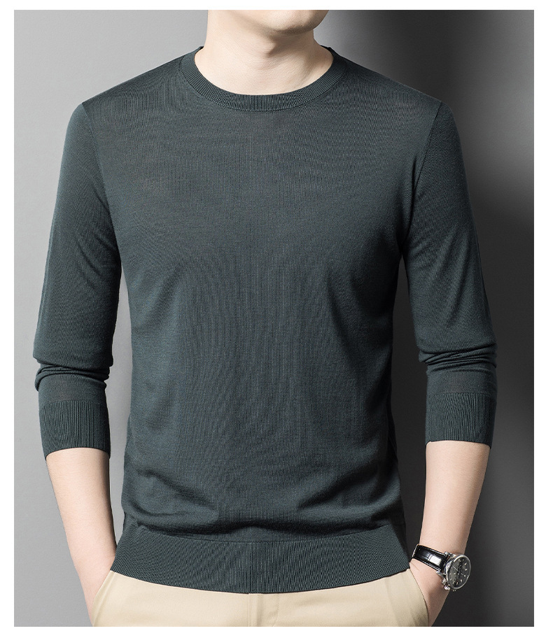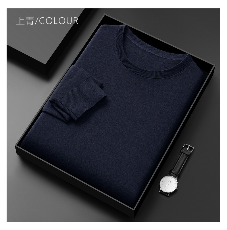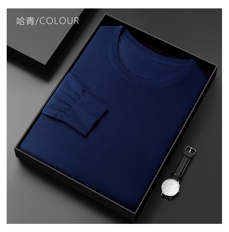 [뉴 오스트레일리아 양모 원사] 60 명의 최악의 스웨터 남자 둥근 목 봄과 가을 얇은 긴 소매 스웨터베이스 스웨터스토어 가기