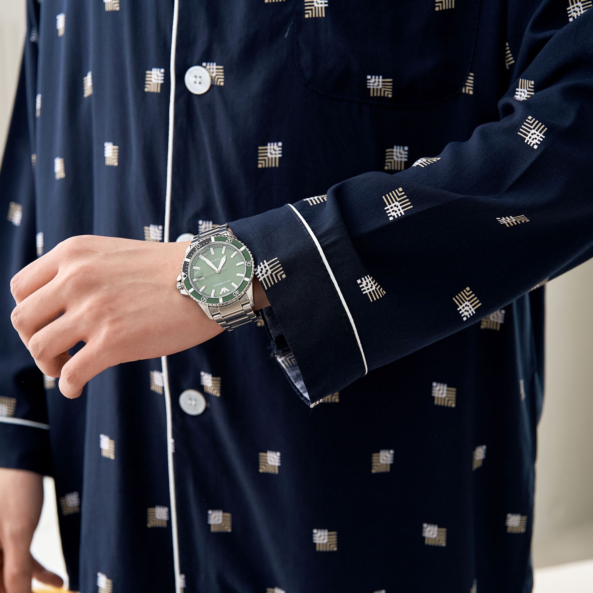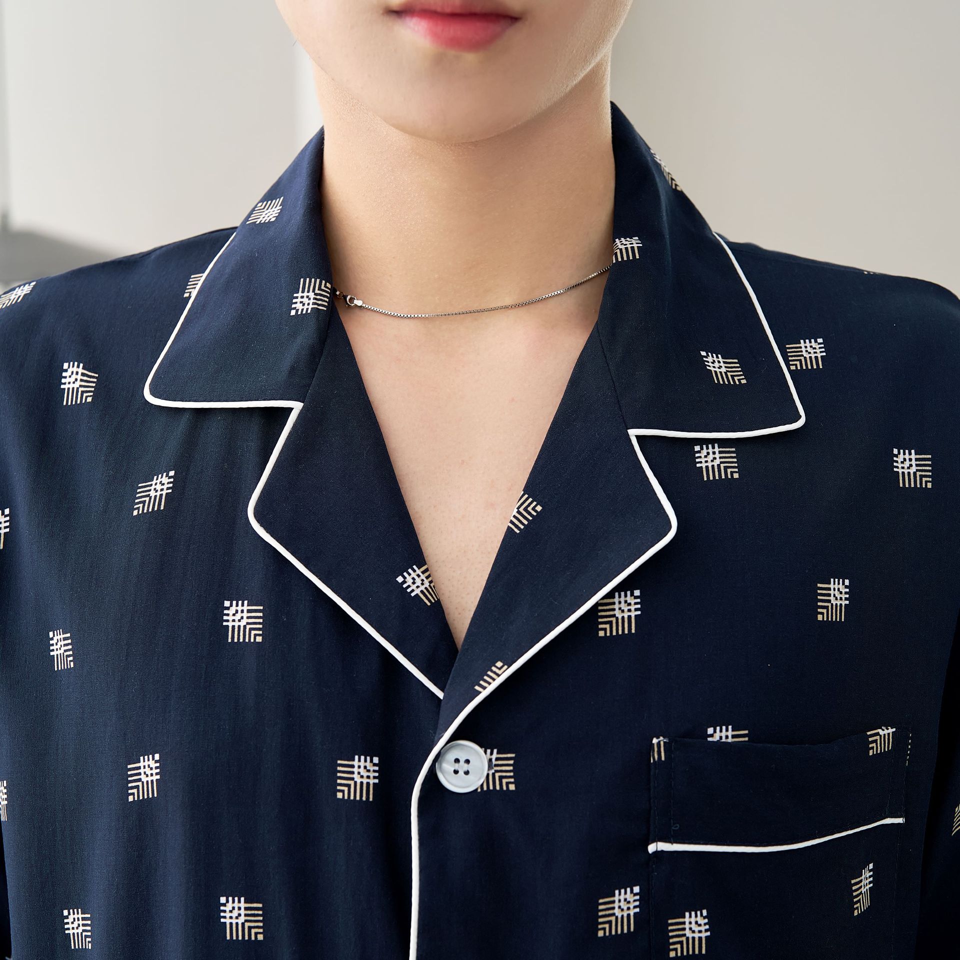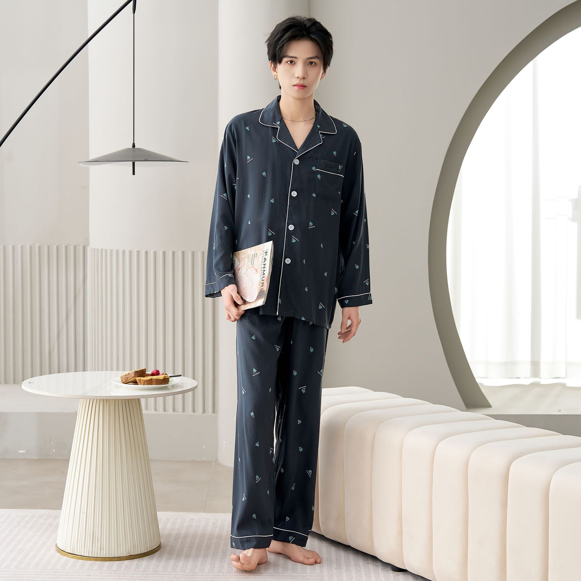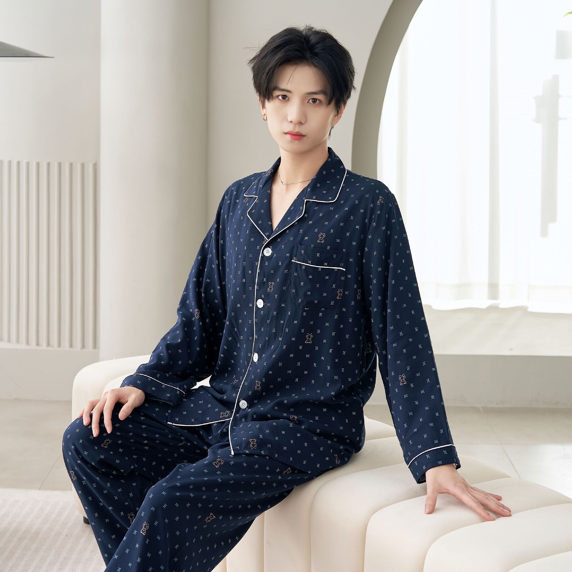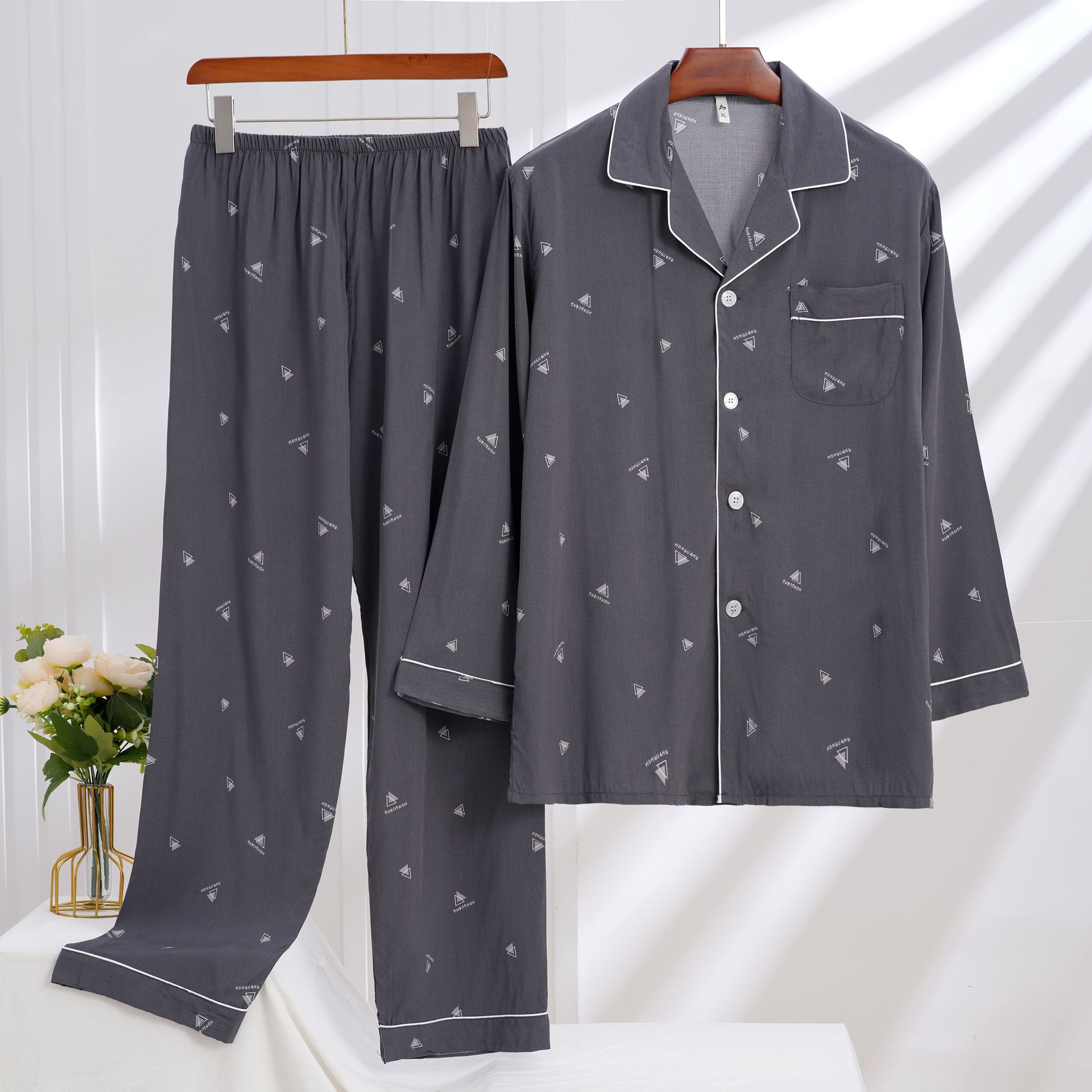 2025 새로운 재고 남성면 실크 봄 여름 가을 긴 소매 얇은 느슨한 잠옷 간단한 편안한 홈 옷
