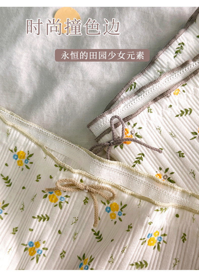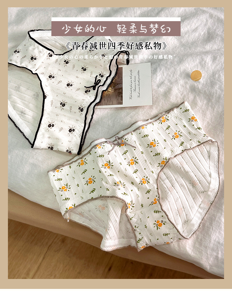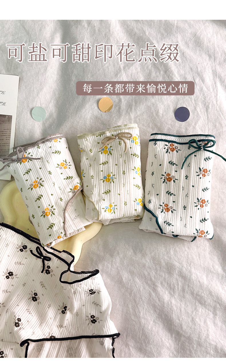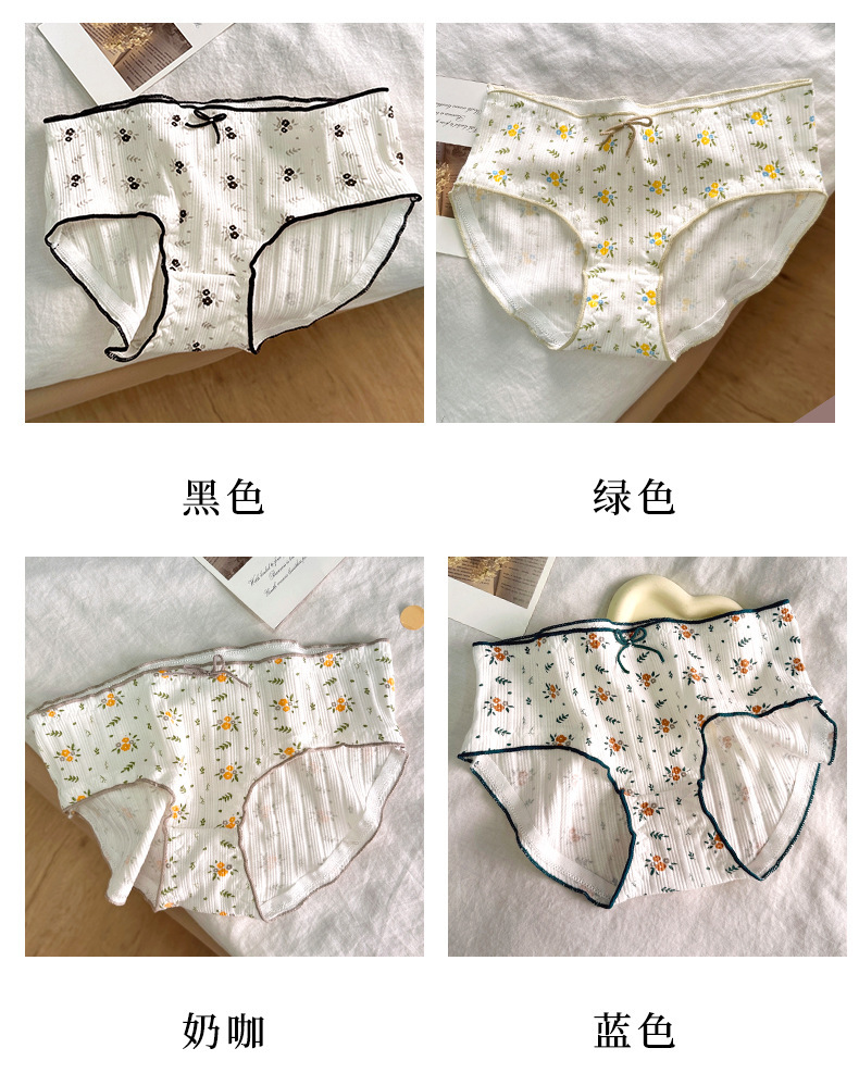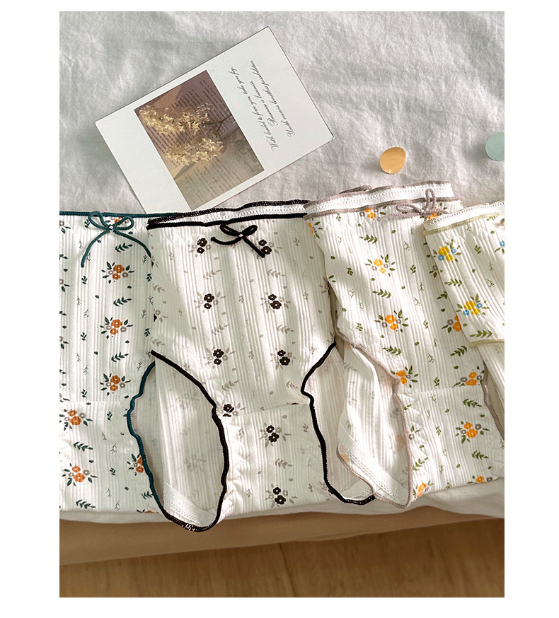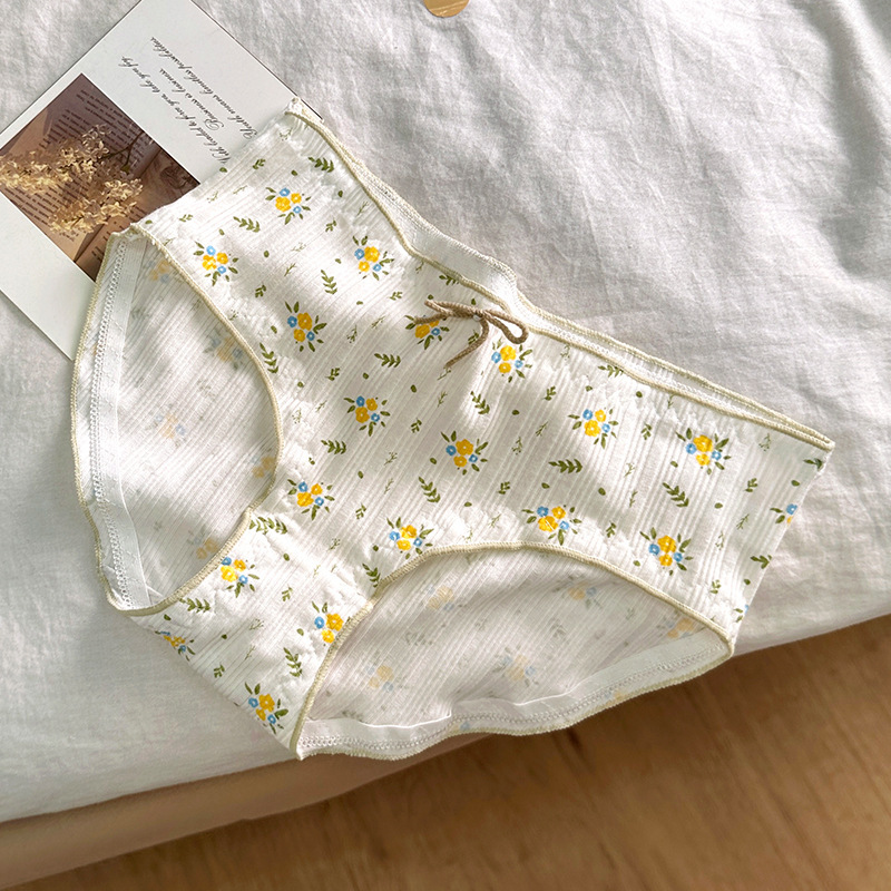 속옷 여성용 코튼 크로 치 소녀의 활 작은 꽃 섹시한 흰색 중간 허리 통기성 브리프스토어 가기