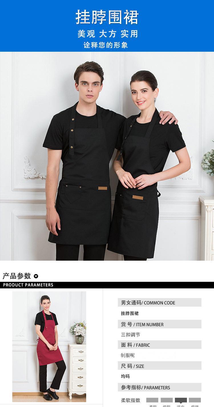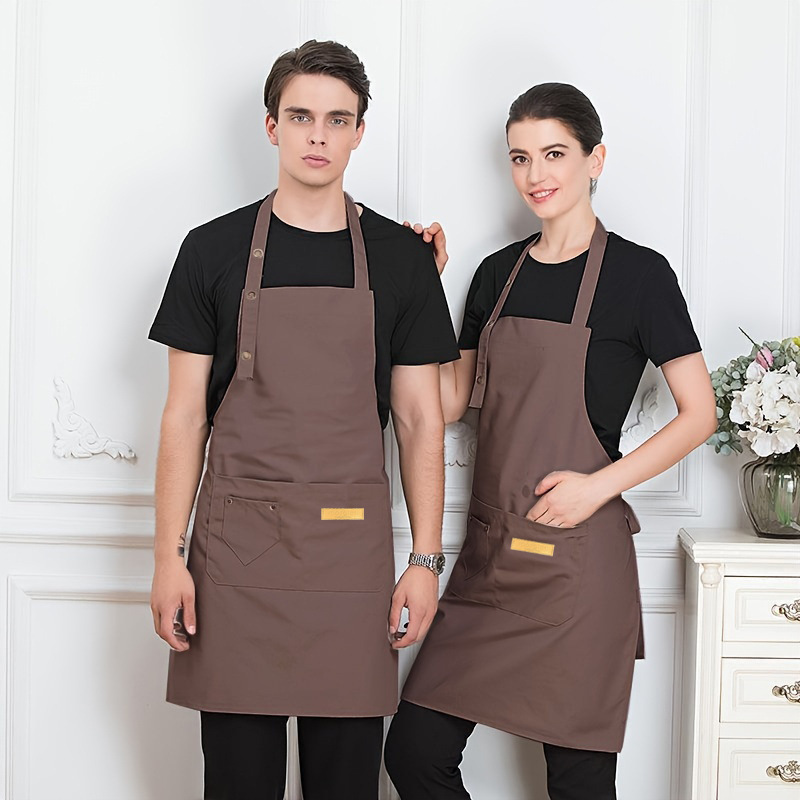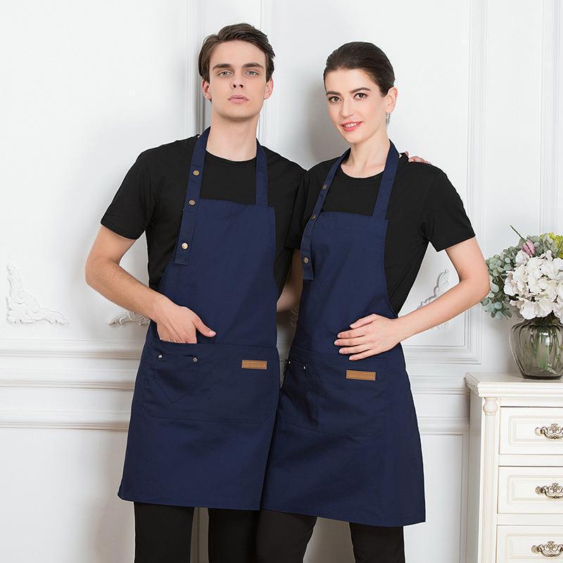 국경 간 캔버스 목 앞치마 턱받이 우유 차 가게 바리 스타 베이크 웨이터 자수 로고 작업복 주방