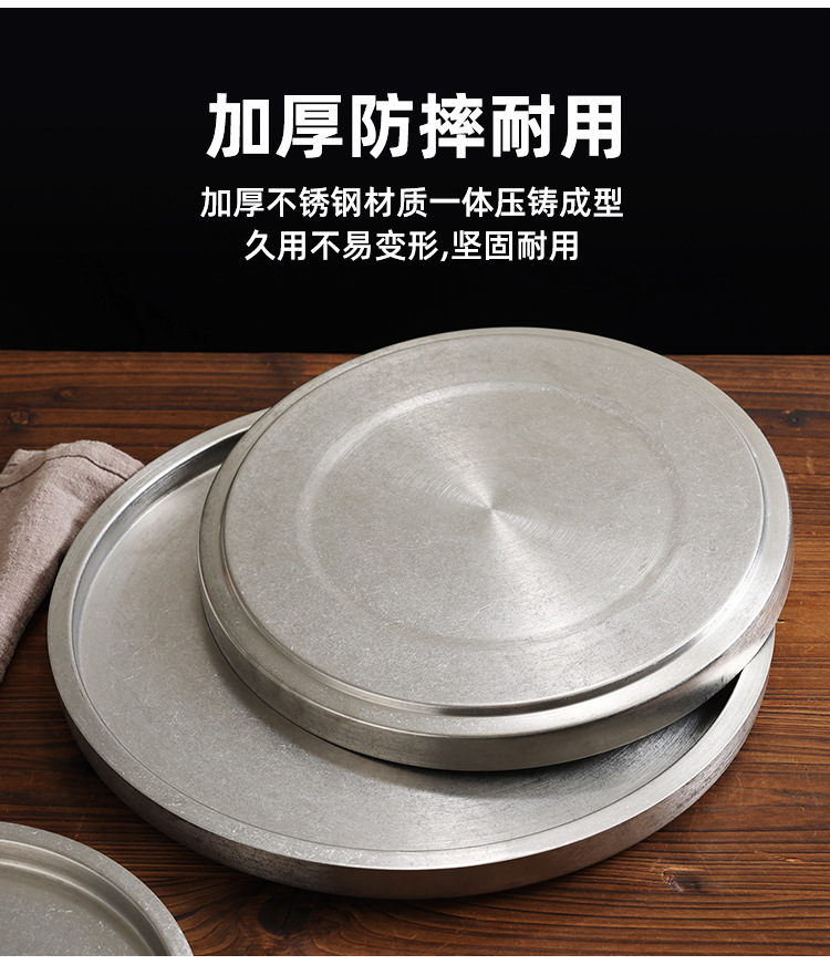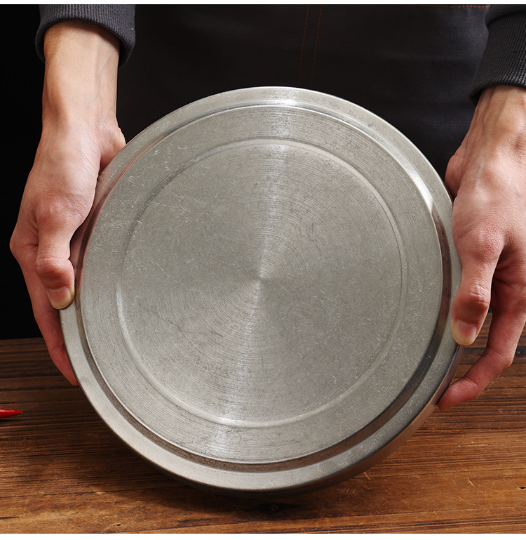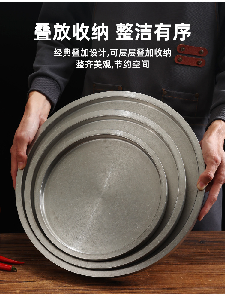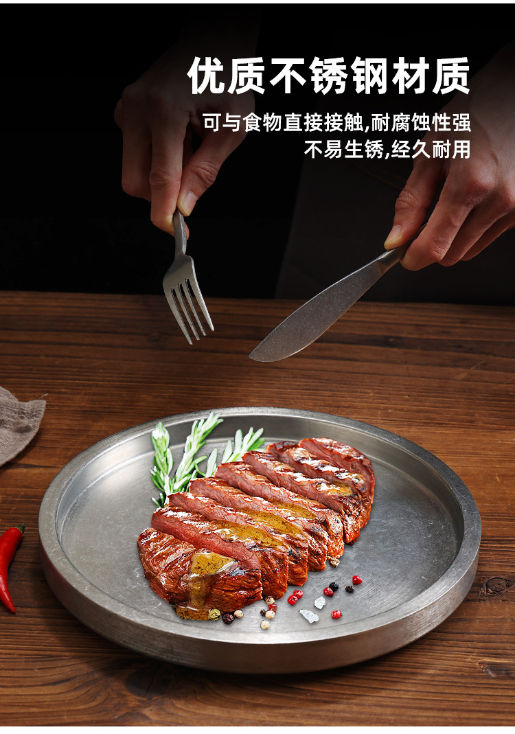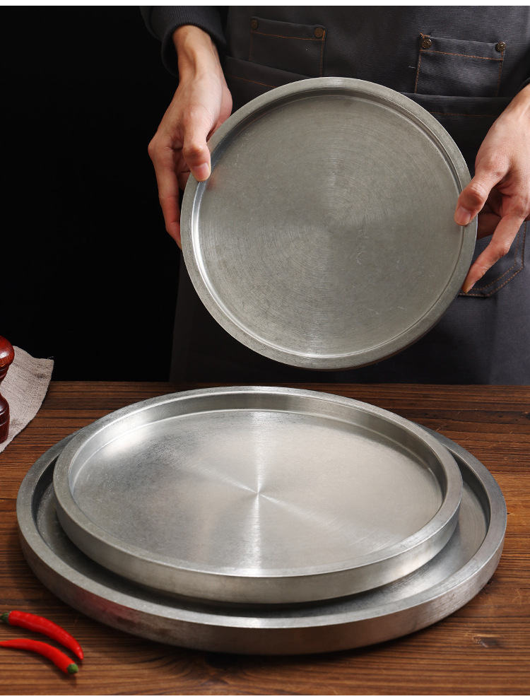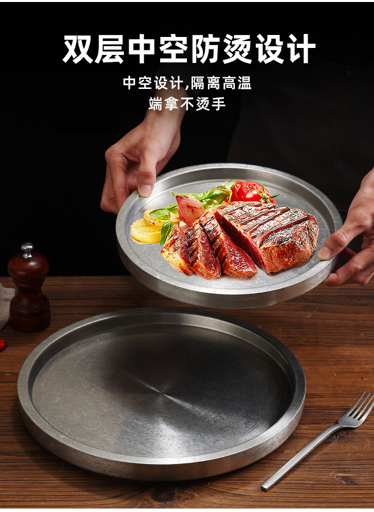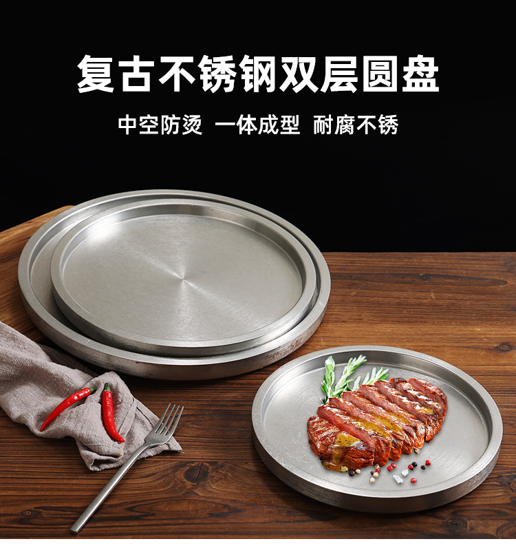 빈티지 스테인레스 스틸 디스크 상업용 쇠고기 트레이 플랫 하단 웨스턴 푸드 플레이트 더블 레이어 플레이트 핫 팟 두꺼운 플레이트 바베큐 플레이트스토어 가기