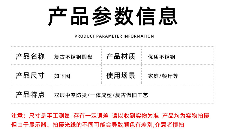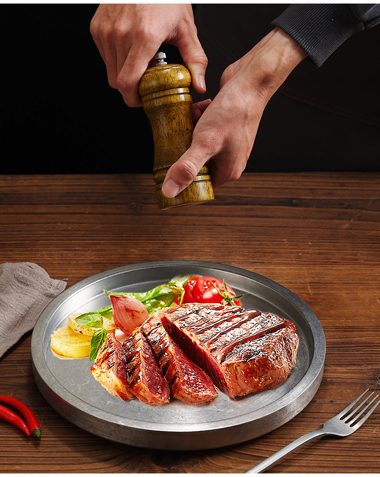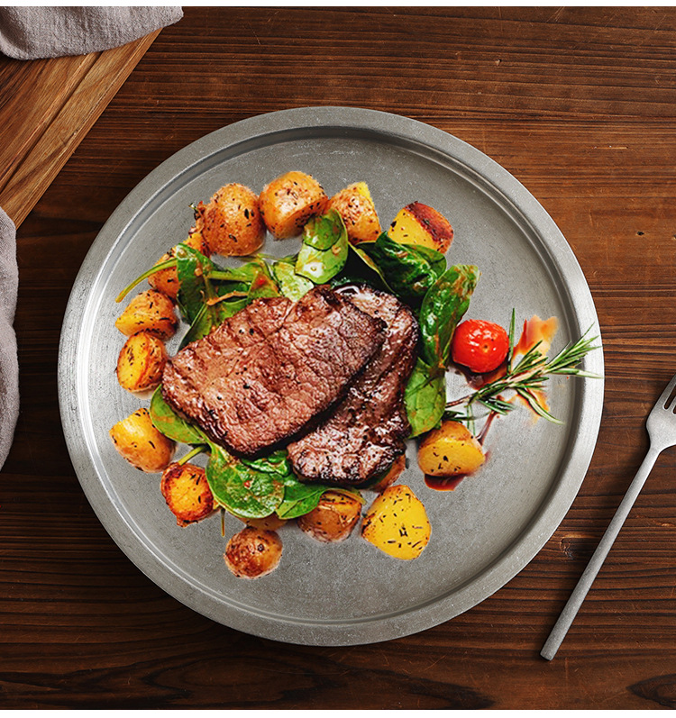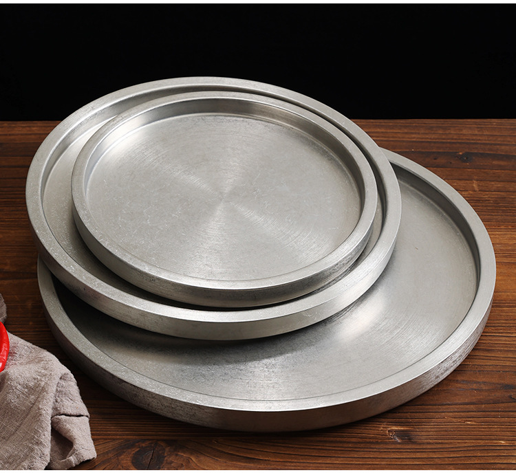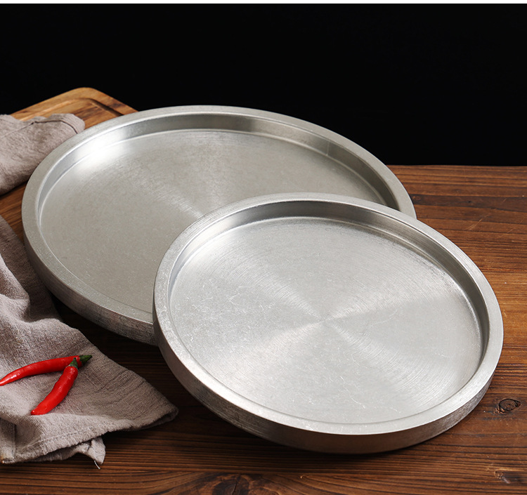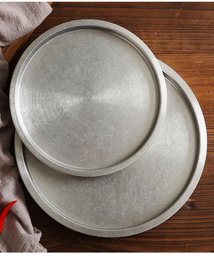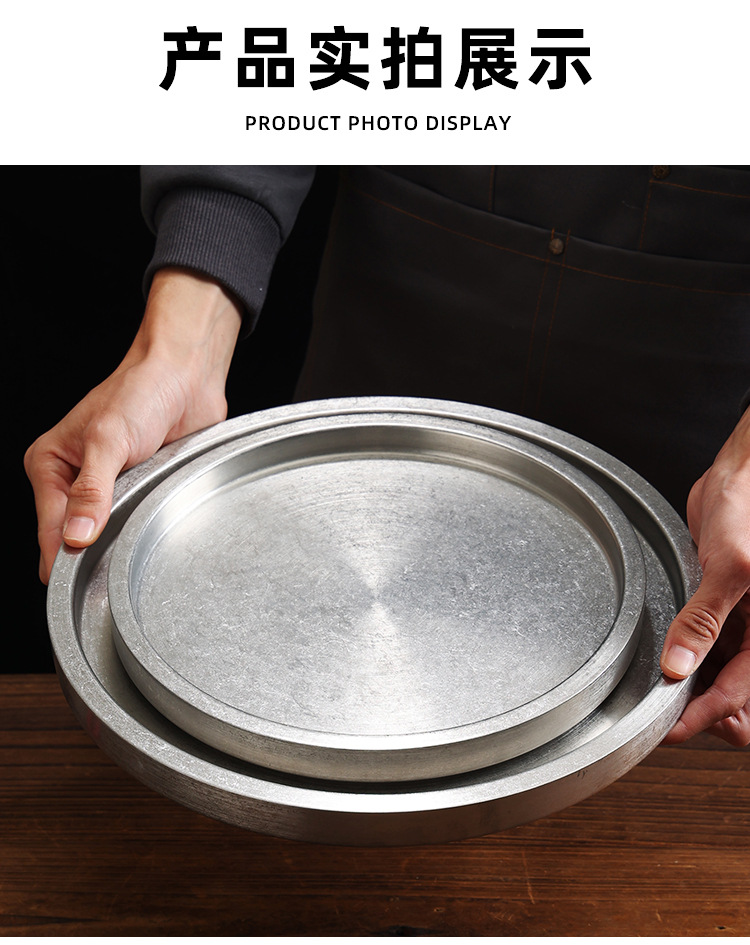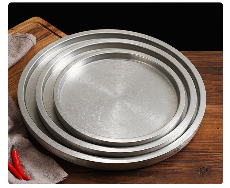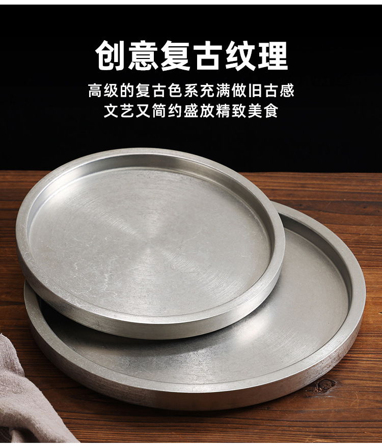 빈티지 스테인레스 스틸 디스크 상업용 쇠고기 트레이 플랫 하단 웨스턴 푸드 플레이트 더블 레이어 플레이트 핫 팟 두꺼운 플레이트 바베큐 플레이트스토어 가기