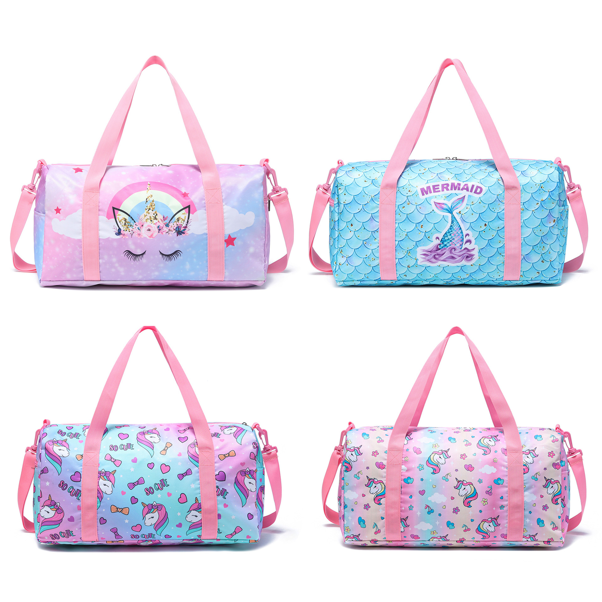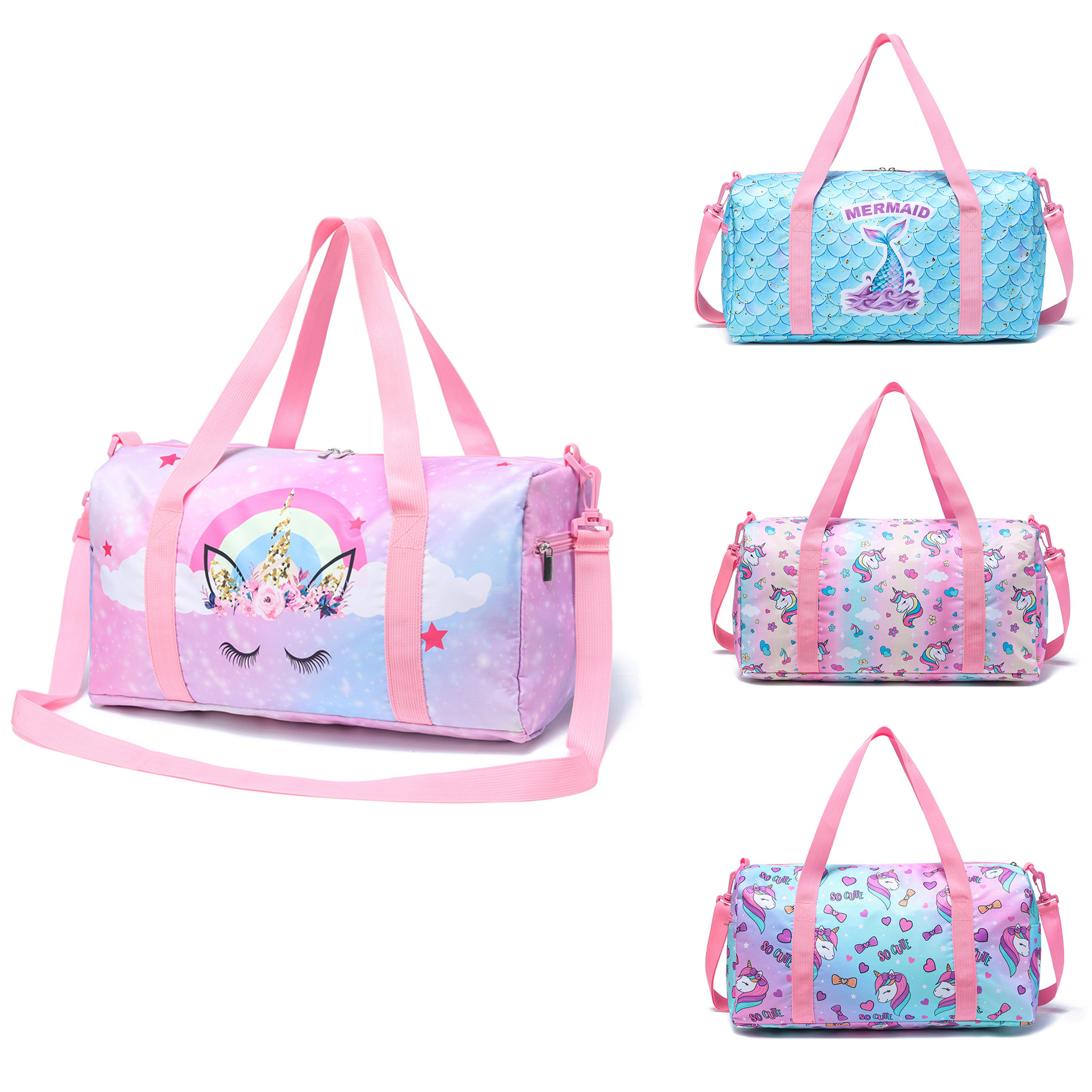 국경 핫 세일 유니콘 인어 패턴 여행 가방 요가 가방 야외 스포츠 보관 가방스토어 가기
