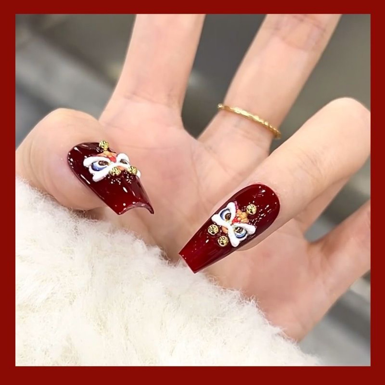 뱀 새해 댄스 사자 네일 아트 스티커 사자 머리 부자 고양이 신 부 국가 바람 구호 네일 스티커스토어 가기