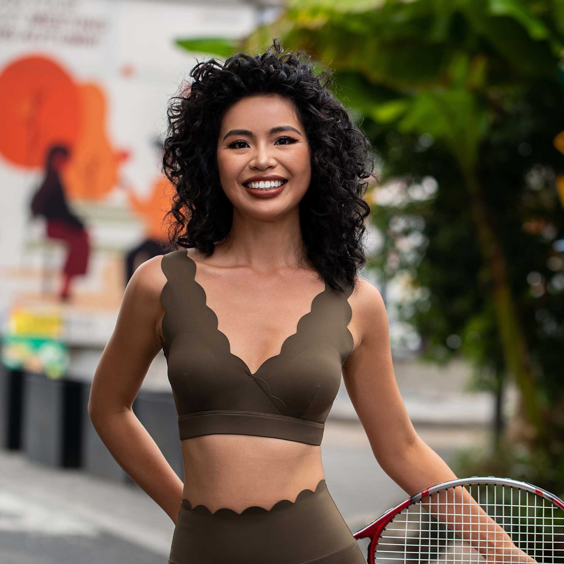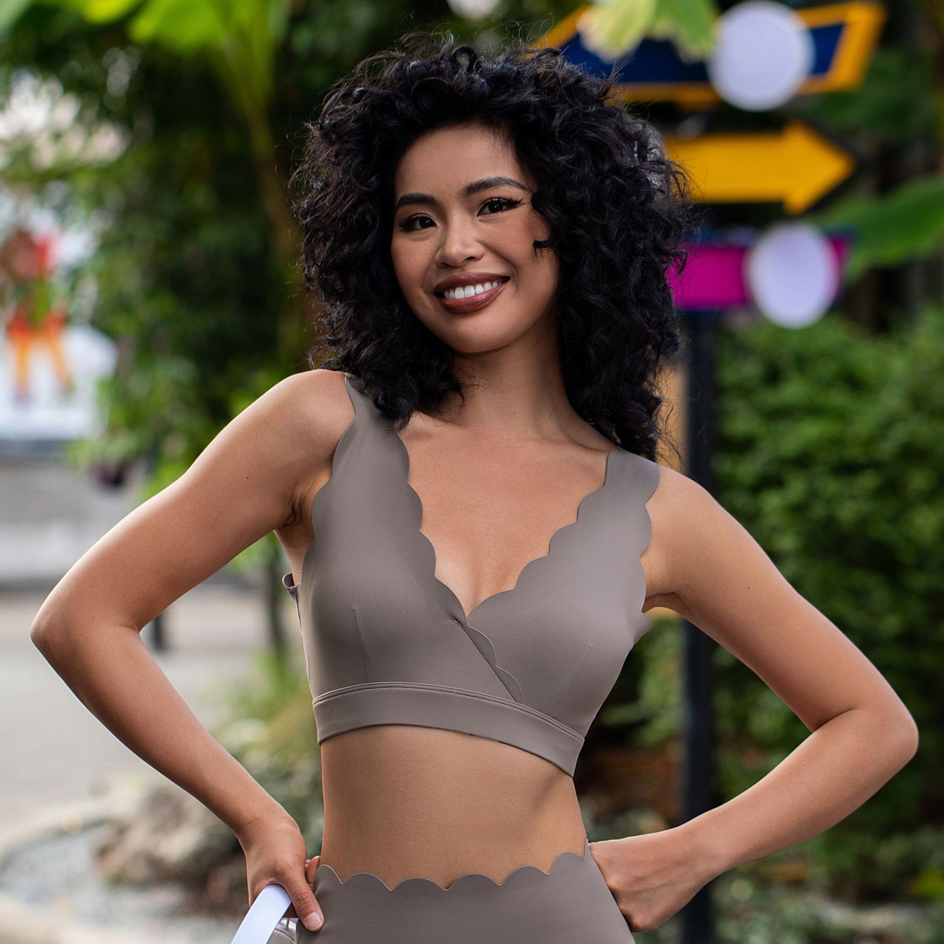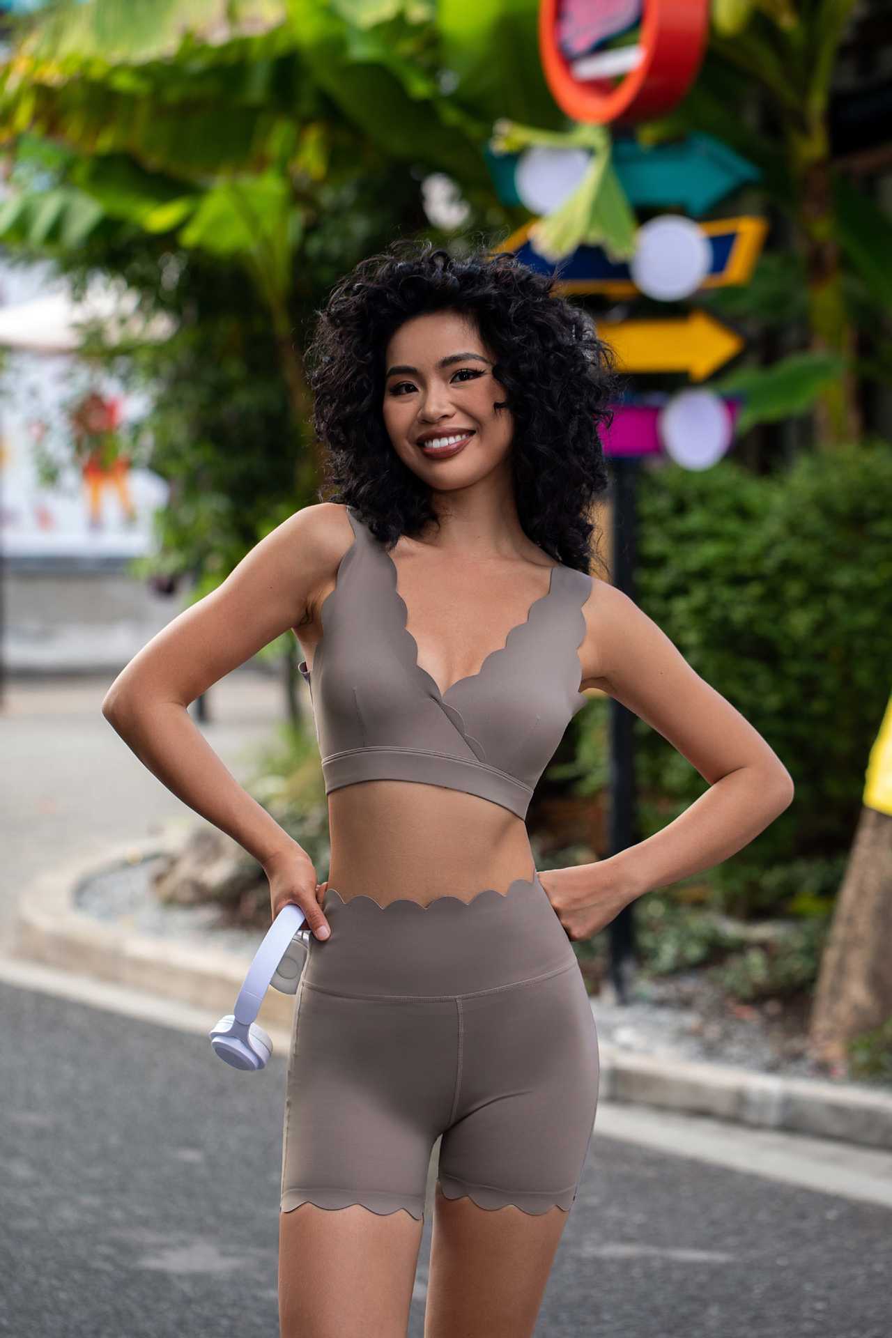 • 코코넛 껍질 브라운 슈트 (탑 + 레이스 반바지)