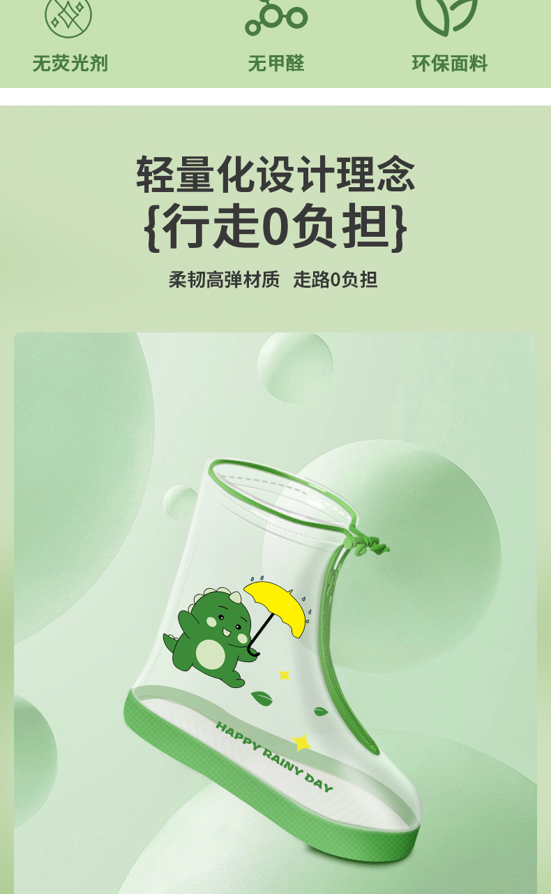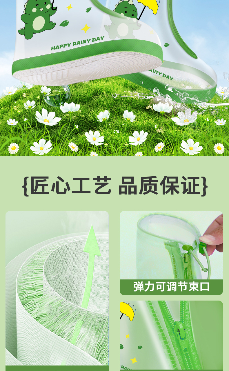 • 그린 공룡 하이 튜브 [사이드 지퍼 + 반사 뒷면 + 신축성 있는 스트랩]
