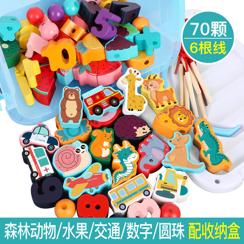 구슬 어린이 장난감 조기 교육 교육 건물 블록 아기 1 ~ 3 세 현악기 로프 미세 운동 훈련 몬테소리 교육스토어 가기