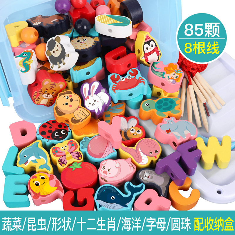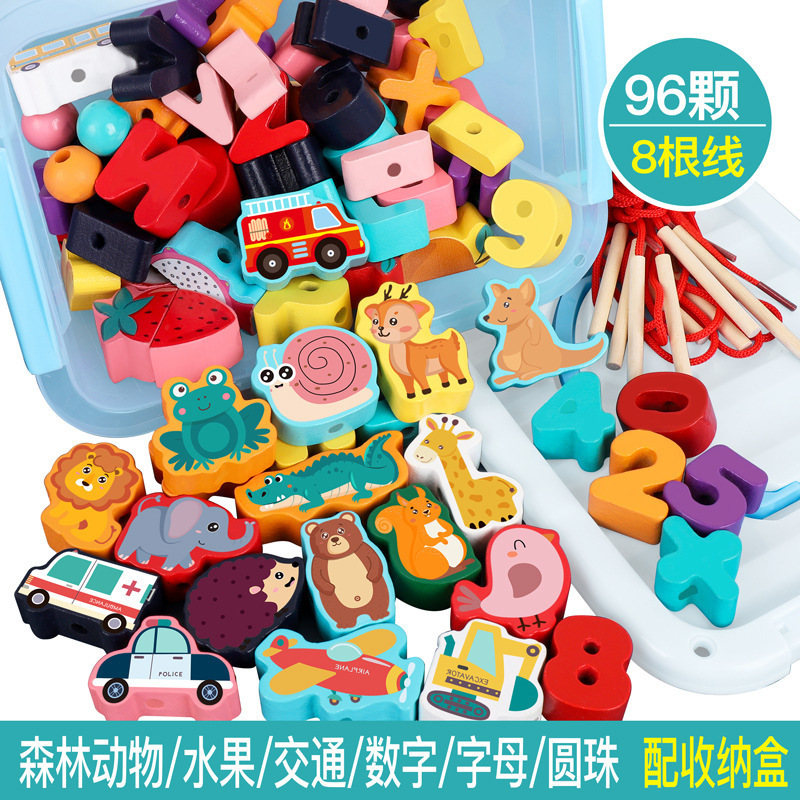구슬 어린이 장난감 조기 교육 교육 건물 블록 아기 1 ~ 3 세 현악기 로프 미세 운동 훈련 몬테소리 교육