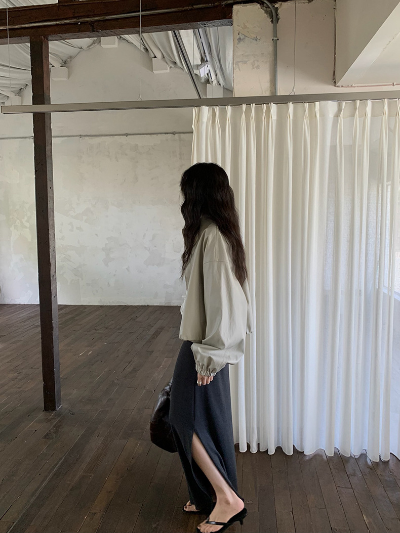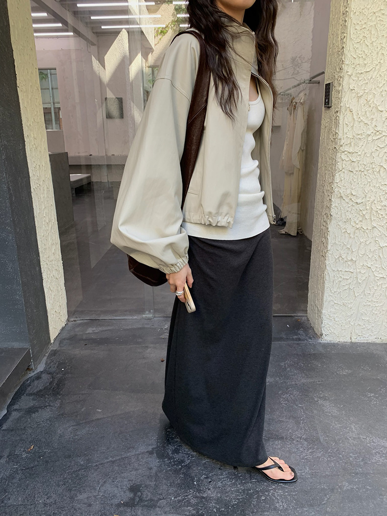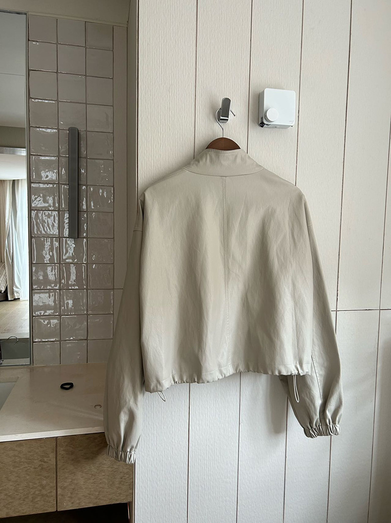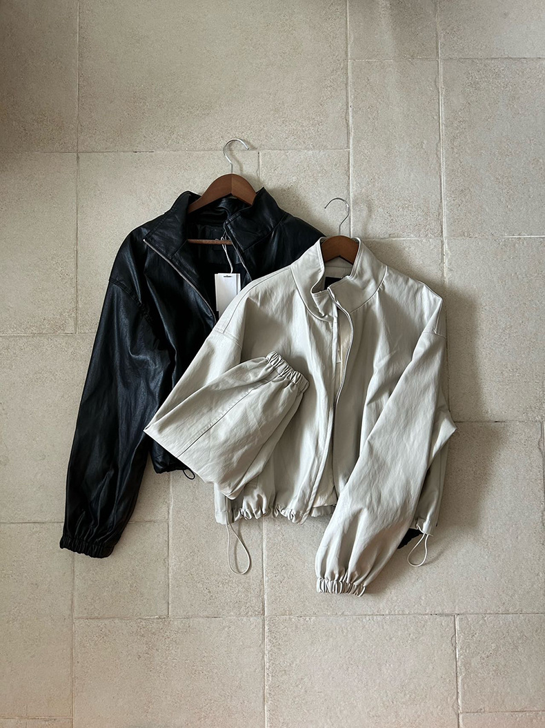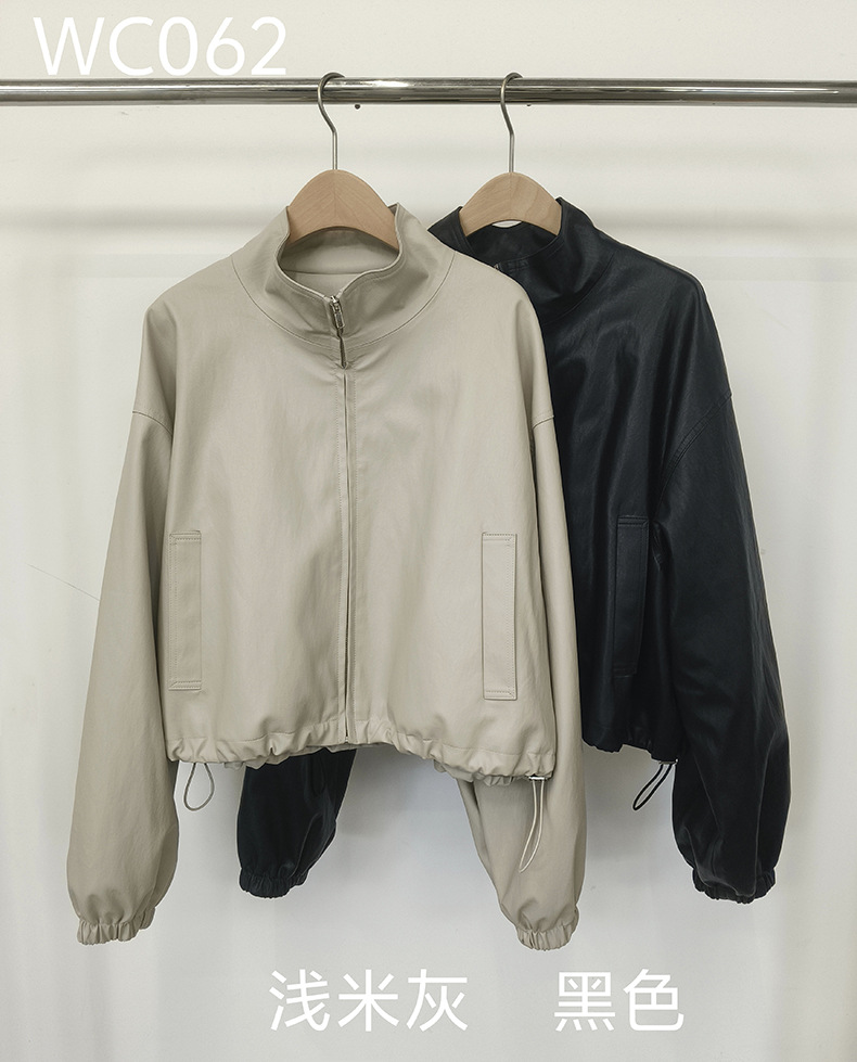 【 40% off 반품/교환 불가】캐주얼 스타일의 스탠드 칼라 지퍼 가죽 자켓, 솔리드 컬러 스탠드 칼라 루즈핏 드로스트링 여성용 아우터 WC06