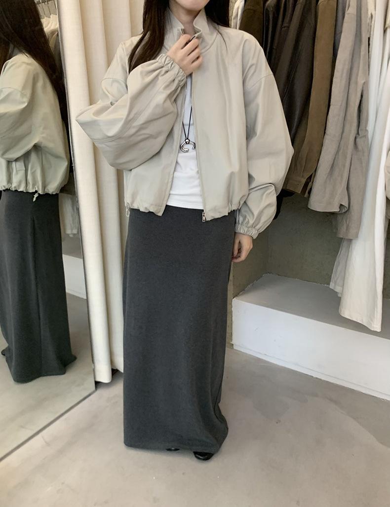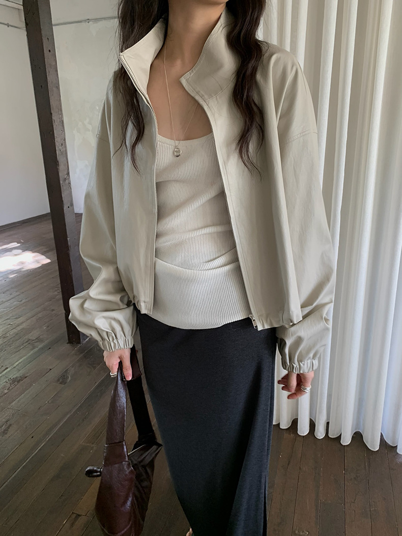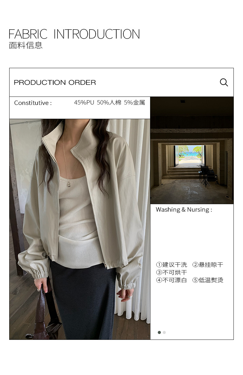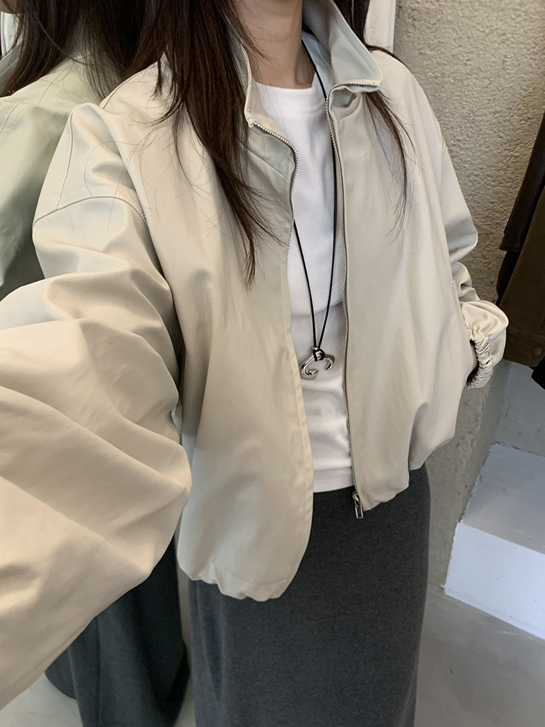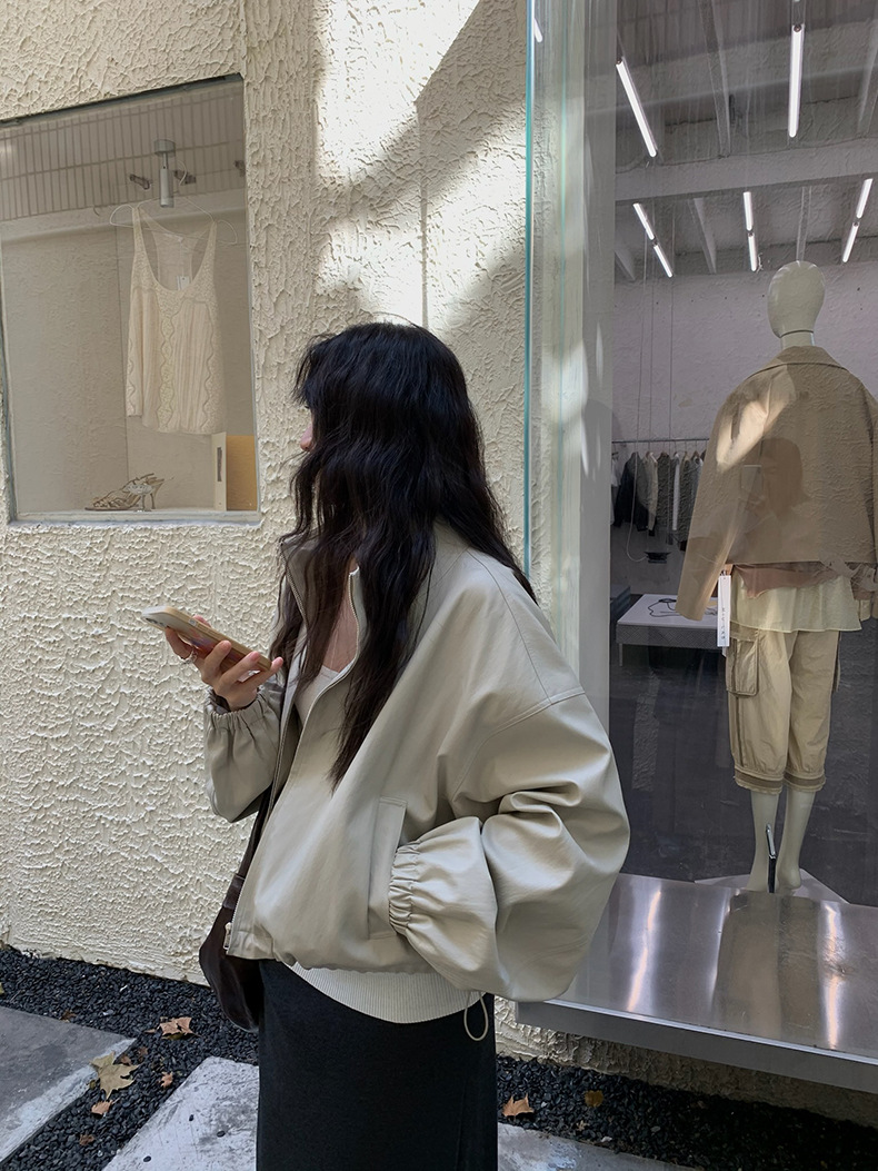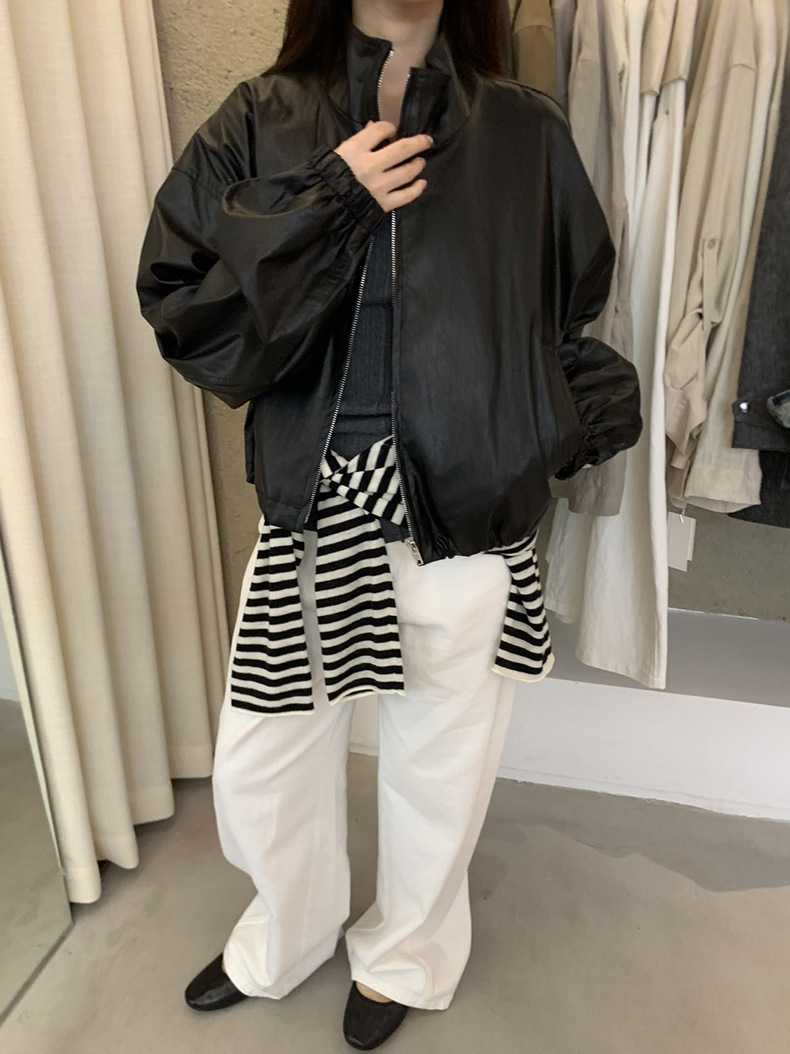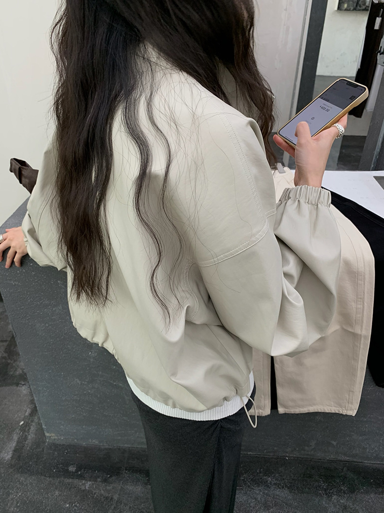【 40% off 반품/교환 불가】캐주얼 스타일의 스탠드 칼라 지퍼 가죽 자켓, 솔리드 컬러 스탠드 칼라 루즈핏 드로스트링 여성용 아우터 WC06스토어 가기